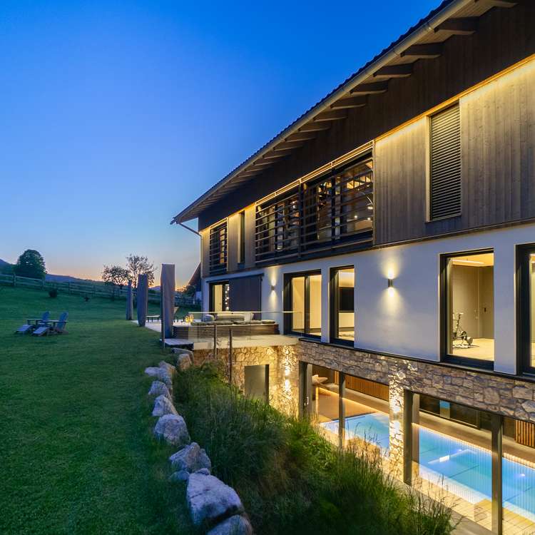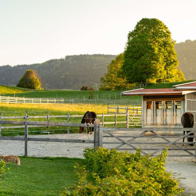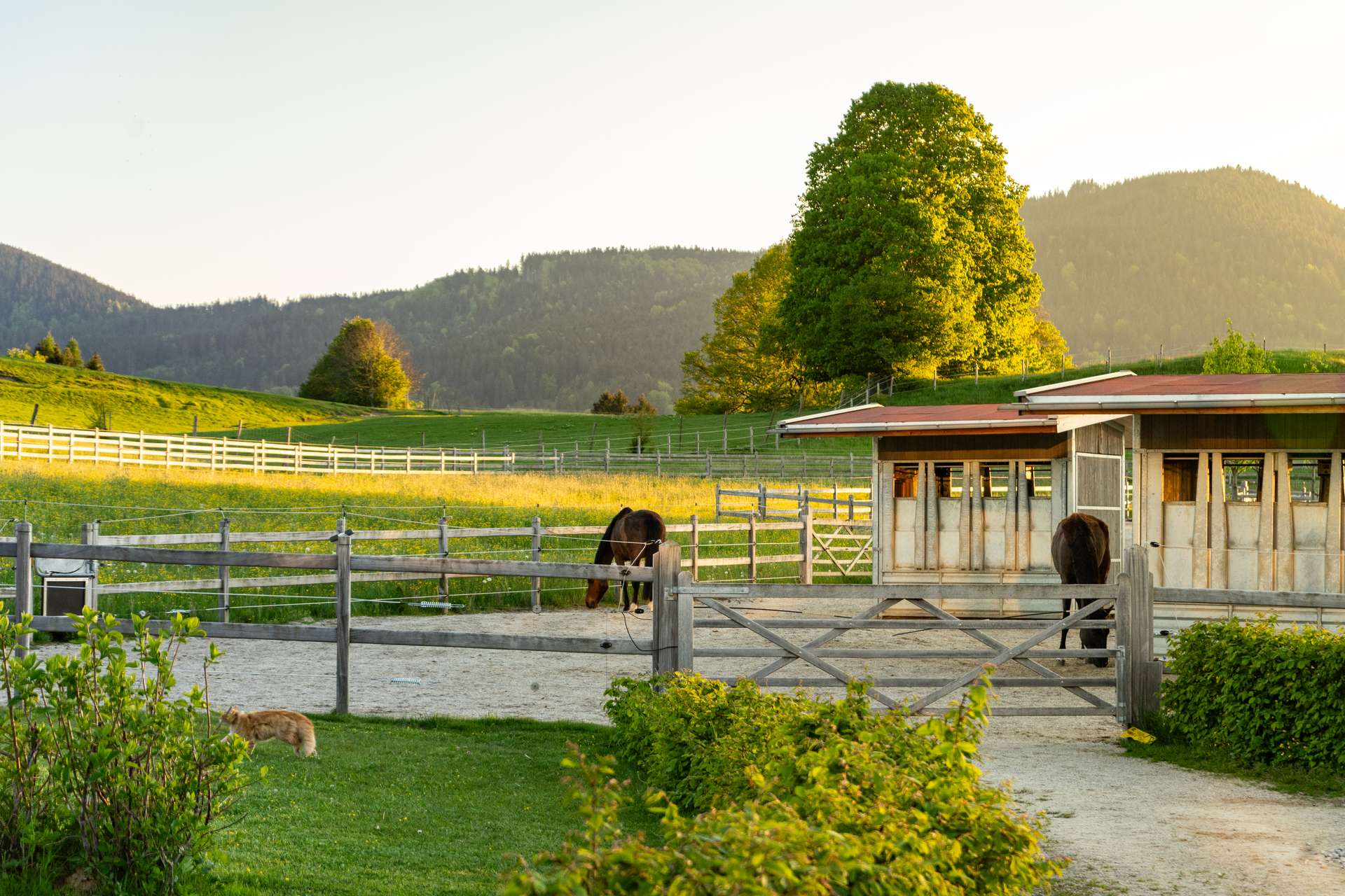 In traumhafter Kulisse im bayerischen Voralpenland präsentiert sich der eindrucksvolle Landsitz auf einem ca. 5 Hektar großen Areal. Mittelpunkt des Reitanwesens bildet ein imposantes Wohngebäude, erweitert zu einem großzügigen Familiensitz. Zusätzlich befindet sich auf dem Areal ein Zuhaus mit Apartments sowie Stallungen, Reithalle, Longierplatz, Außenreitplatz, Rennbahn sowie eine Aktivlaufstrecke mit automatischer Fütterung. Leidenschaft zum Reitsport und vielfältige Nutzungsmöglichkeiten in einem luxuriösem Ambiente zeichnen das erst vor Kurzem fertiggestellte Anwesen aus. Die repräsentative Anlage kombiniert auf eindrucksvolle Weise exklusives Wohnen mit umfangreichen Möglichkeiten für Pferdeliebhaber.