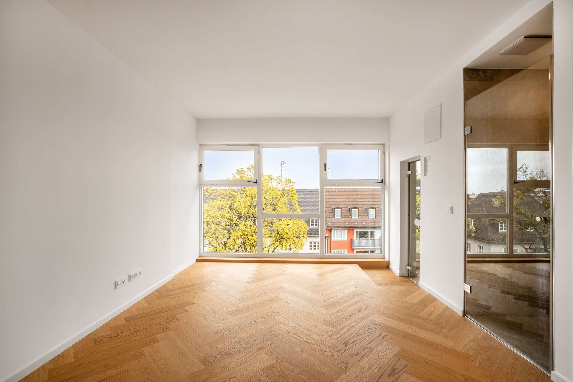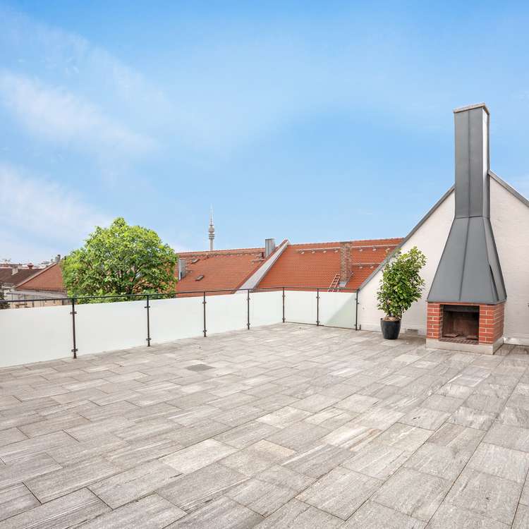 Über den Dächern von Schwabing, mit weitem Blick über die Stadt, präsentiert sich dieses Penthouse als absolutes Unikat in einer der gefragtesten Lagen Münchens. Klare Linien, großzügige Proportionen und eine durchgängig hochwertige Ausführung standen im Fokus der im März 2026 fertiggestellten Sanierung. Ein edles Fischgrätparkett zieht sich durch die gesamte Wohnung und unterstreicht den sehr gepflegten Gesamtzustand, während die klare Grundrissstruktur genügend Spielraum für personalisierte Anpassungen lässt. Der private Liftzugang führt direkt in die Wohnung und betont den Anspruch an Diskretion und Komfort. Das durch drei große Lichtkuppeln erhellte Entrée öffnet sich zu weitläufigen Wohnbereichen, die mit fließenden Übergängen und einer ruhigen, stimmigen Raumwirkung überzeugen. Der knapp 90 m² große Wohn- und Essbereich mit angrenzender Küche bildet das Zentrum der Wohnung. Eine offene Feuerstelle setzt hier einen atmosphärischen Akzent und schafft einen besonderen Mittelpunkt im Wohnzimmer. Mehrere Zugänge führen auf die rund 230 m² große, umlaufende Dachterrasse, die den Wohnraum nahtlos nach außen erweitert und ein nahezu vollständiges 360°-Panorama vom Fernsehturm über die Dächer Schwabings bis hin zur Frauenkirche eröffnet. Gleichzeitig bietet sie außergewöhnlich viel Potenzial für eine persönliche Wohlfühloase: Ob BBQ-Grill mit moderner Outdoor-Küche, Lounge-Bereich oder ein urbanes Gartenkonzept – die Fläche lässt sich flexibel und nach eigenen Vorstellungen gestalten. Die angrenzenden Räume, darunter Schlafzimmer und Arbeitsbereich, verfügen jeweils über eigene Terrassenzugänge und profitieren gleichermaßen von der offenen Weite und der erhöhten Lage. Das Penthouse umfasst zwei Schlafzimmer mit en-suite Badezimmern. Ergänzt wird das Raumangebot durch drei weitere Zimmer, die sich frei nach Bedarf nutzen lassen – etwa als Arbeitszimmer oder Kinderzimmer. Der Fitnessraum mit Sauna und Walk-in-Dusche schafft einen praktischen Wellnessbereich im eigenen Zuhause. Ein außergewöhnliches Penthouse, das in puncto Großzügigkeit neue Maßstäbe setzt.