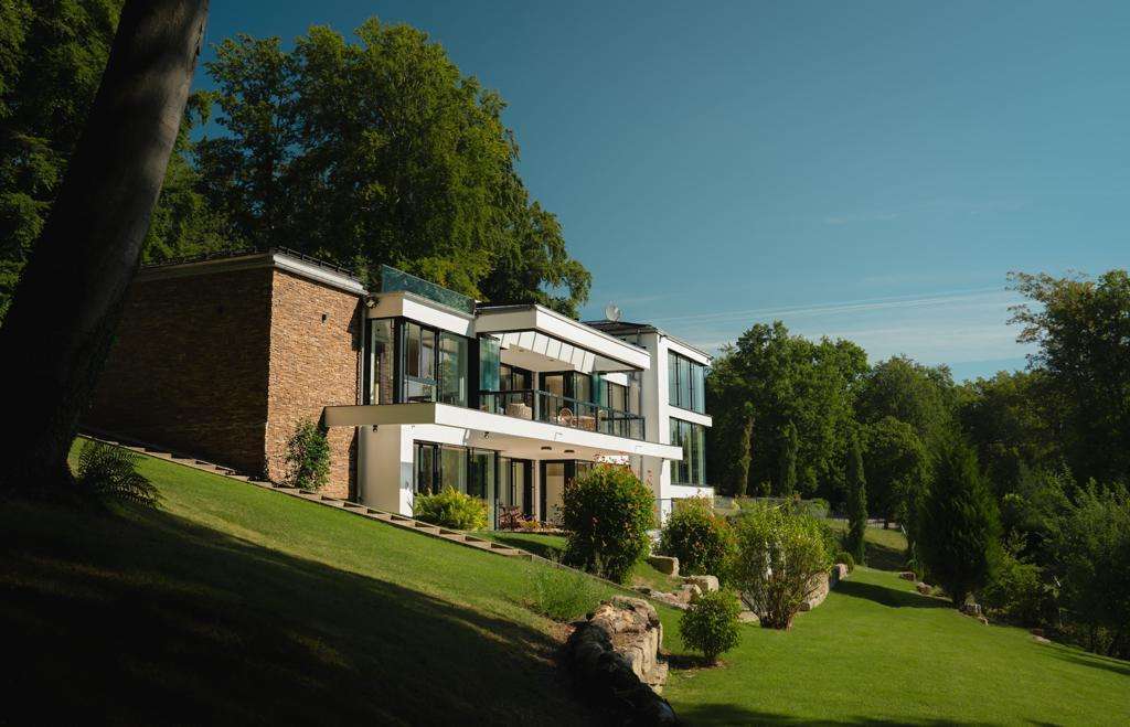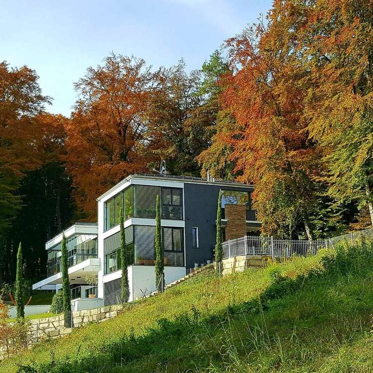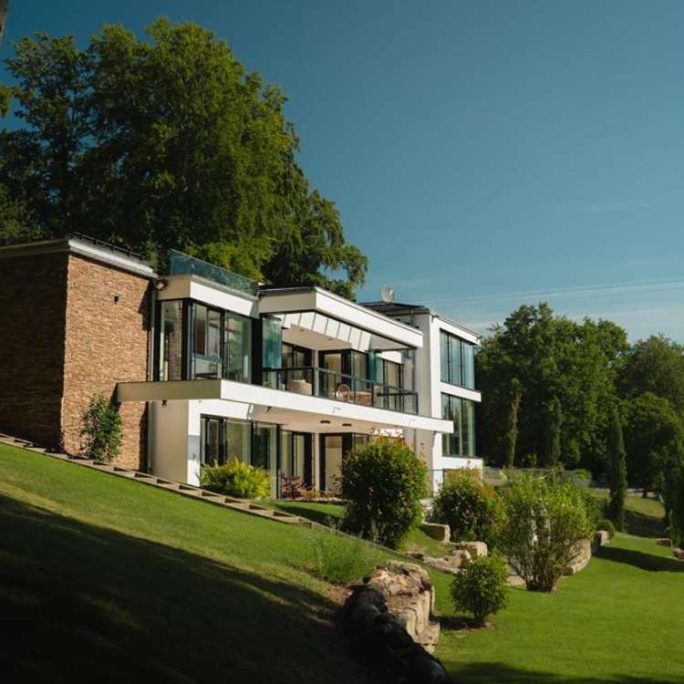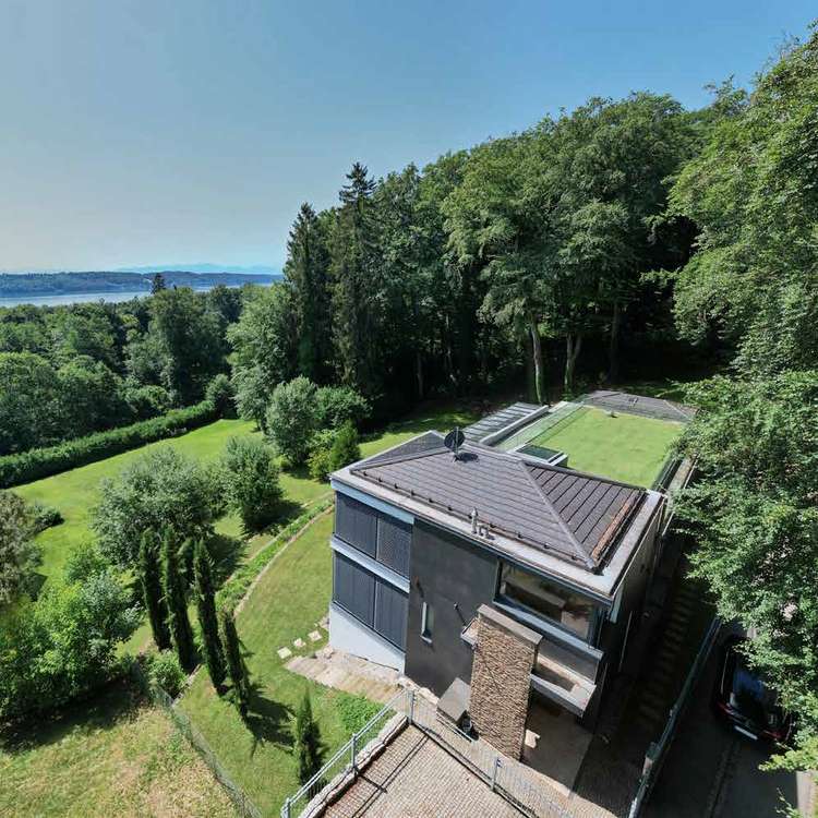 Die exklusive Prachtvilla wurde in modern-eleganter Architektur in einer der prominentesten Straßenzüge von Starnberg errichtet und liegt am Westufer auf einer Anhöhe, ruhig und privat am Ende einer Sackgasse: Über drei Ebenen bestechen imposante Glasfronten und Terrassen, konsequent zur Gartenlandschaft und zum Starnberger See ausgerichtet, vereint mit einem imposanten 180 Grad-Weitblick in die Ferne. Die Kombination aus ausgesuchten Materialien, einem hochmodernen Design und wunderschönen Blickachsen ins Grüne tragen zu dem besonderen Charme dieser Liegenschaft bei. Dabei sind die Wohnbereiche sowie Gartenterrassen stets vor fremden Blicken geschützt und von der Straße sowie der Zufahrt aus uneinsehbar. Das Herzstück der Villa bietet einen großen Wohnraum mit Weitblick, ein bemerkenswert großzügiges Wohn- und Esszimmer sowie eine halboffene Küche. Der Wohnbereich erweitert sich auf die geräumige Veranda, die sich durch verstellbare Glaselemente in einem Wintergarten verwandeln lässt. An den Wohnbereich gliedert sich im Obergeschoss ein Kaminzimmer, auch nutzbar als Bibliothek oder Arbeitszimmer, mit Austritt auf die atemberaubende Dachterrasse. Des weiteren befinden sich drei geräumige En-Suite-Schlafzimmer mit direktem Zugang zur Terrasse im Gartengeschoss.