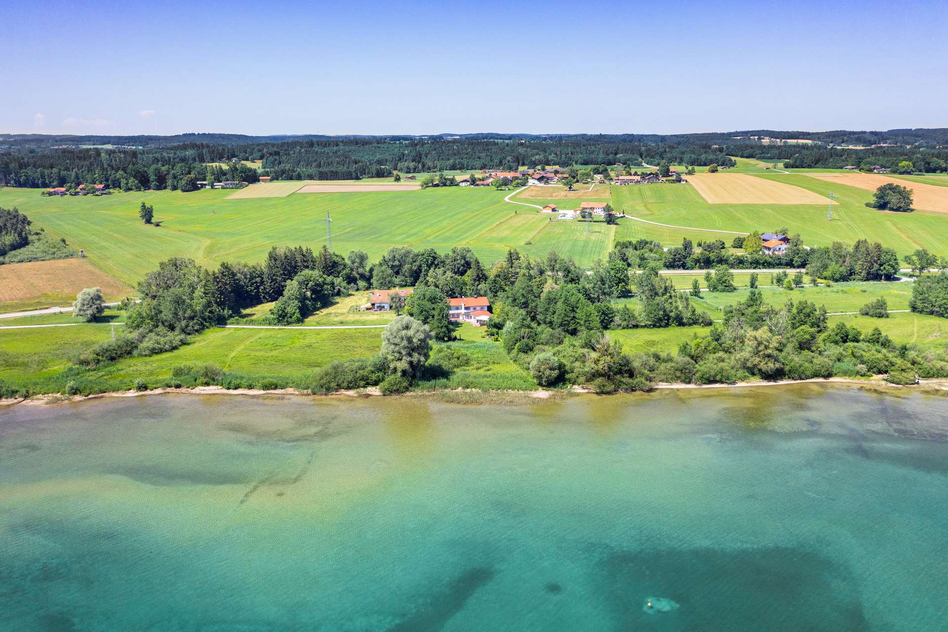 An einem der schönsten Plätze Bayerns, am Nordufer des Chiemsees – eingebettet in die malerische Landschaft des Chiemgaus, direkt am glitzernden Ufer des Chiemsees, beeindruckt dieses traumhafte Seeuferanwesen mit einem atemberaubenden Weitblick. Das unmittelbar am See gelegene Grundstück besticht durch seine optimale Südausrichtung und garantiert traumhafte Sonnenverläufe von morgens bis in die Abendstunden hinein. Besonders hervorzuheben ist: Es gibt keinen öffentlichen Weg zwischen Grundstück und See sowie auch keine seitlichen Nachbarn, wodurch eine absolute Privatsphäre garantiert ist. Durch die erfolgte Aufschüttung des Geländes thront das Haus über den Wiesen in absolut idyllischer Lage. Von nahezu jedem Punkt des Grundstücks eröffnen sich beeindruckende Sichtachsen über den See bis hin zum majestätischen Alpenpanorama – eine Aussicht, die ihresgleichen sucht. Die Terrassen- und Balkonflächen sowie die zahlreichen, bodentiefen Fenster sind selbstverständlich ebenso in Richtung „bayerisches Meer“ sowie das Bergmassiv ausgerichtet. So bestechen die Räumlichkeiten im Erdgeschoß insbesondere durch die großzügige Aufteilung sowie den immerwährend Bezug zum See. Stets von den Eigentümern als Familienhaus genutzt, spürt man die gemütliche Wohnatmosphäre und die Liebe zum Detail, die bei der Errichtung eine besondere Geltung fand. So bietet der Speisesalon mit antikem Kaminofen einen wunderbaren Raum für Familienessen und sowohl für Klavier sowie Arbeitsbereich im Erker finden sich reizende Plätze auf dieser Ebene. Im Obergeschoß bieten fünf Schlafzimmer (neben Abstell- und Garderobenzimmern) und zwei Bäder ausreichend Platz für eine mehrköpfige Familie. Auch die Nutzung zweier Zimmer mit Bad und separater Küche als kleine Einliegerwohnung wäre möglich. Von drei Zimmern besteht Zugang auf den Süd-Balkon, so dass man auch auf dieser Etage auf ein lauschiges Plätzchen im Freien mit gigantischem Weitblick nicht verzichten muss. Das Dachgeschoß ist ausgebaut und bietet für kleine Kinder eine wunderbare Weitläufigkeit und Spielebene. Zudem kann diese Fläche als großzügige Abstellfläche dienen. Ob als privates Refugium, Ferienresidenz oder werthaltige Investition – dieses Anwesen am Nordufer des Chiemsees zählt zu den seltenen Juwelen am bayerischen Immobilienmarkt.