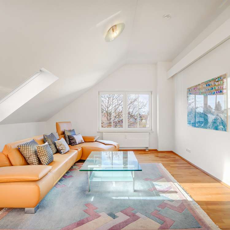 Diese attraktive 3-Zimmer-Wohnung erstreckt sich auf ca. 93 m² Wohnfläche und überzeugt durch ihre Großzügigkeit sowie eine gelungene Raumaufteilung. Sie befindet sich im Dachgeschoss eines Wohnhauses mit 8 Einheiten in einer ruhigen Wohngegend der Gemeinde Gilching. Ein zentraler Dielenbereich verbindet die Räumlichkeiten auf kurzem Wege. Helle Fensterflächen durchfluten die Wohnung mit viel Tageslicht. Zudem sorgt die beeindruckende Deckenhöhe für ein offenes Raumgefühl. Der Wohn- und Essbereich bildet das Herzstück der Wohnung. Von hier aus gelangen man über eine Flügeltüre auf die ca. 12 m² große Terrasse mit Süd-West-Ausrichtung, die ideale Voraussetzungen für sonnige Nachmittage und entspannte Abende im Freien bietet. Die separate Küche, bestehend aus sehr hochwertigen Materialien, ist funktional geschnitten und mit AEG-Markengeräten ausgestattet. In nordwestlicher Ausrichtung befindet sich das großzügige Schlafzimmer, während das weitere, flexibel nutzbare Zimmer sich ideal als Kinder-, Gäste- oder Arbeitszimmer anbietet und ebenfalls über einen Zugang zur Terrasse verfügt. Zeitlos elegant präsentiert sich das Badezimmer mit einer Badewanne sowie einer Regendusche, ergänzt durch ein separates Gäste-WC mit praktischem Waschmaschinen- und Trockneranschluss für zusätzlichen Komfort. Im Untergeschoss steht zudem ein gemeinschaftlicher Wasch- und Trockenraum zur Verfügung. Abgerundet wird dieses attraktive Angebot durch einen Einzelstellplatz in der Tiefgarage.