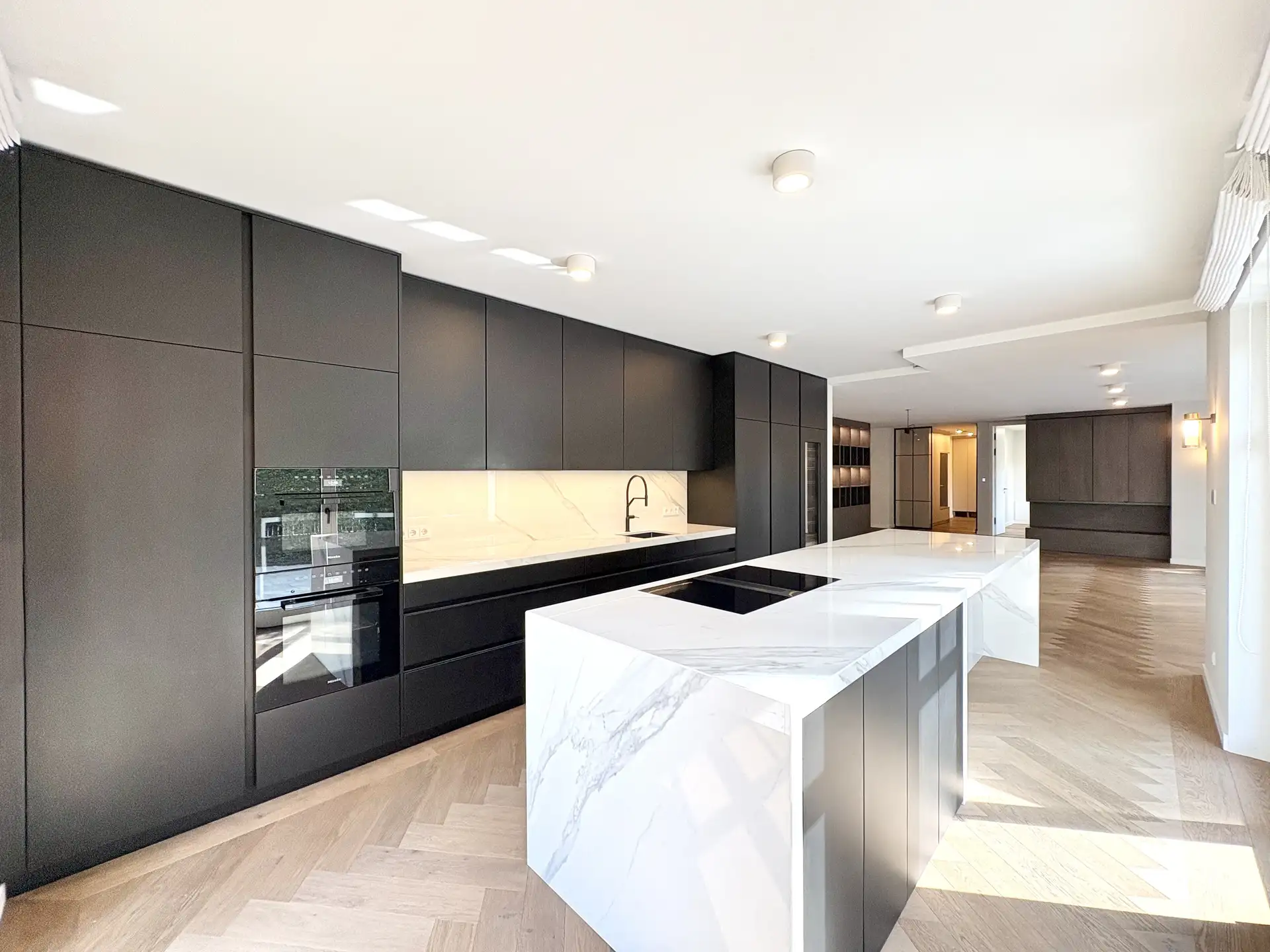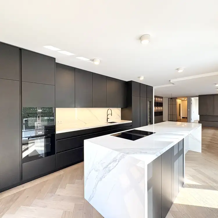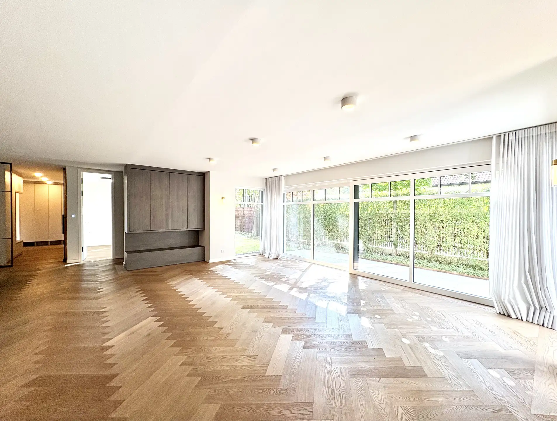 In absolut ruhiger und begehrter Lage von Bogenhausen präsentiert sich diese luxuriöse Gartenwohnung als echtes Unikat: Mit insgesamt 8 Zimmern, großzügigen 2,70 m Raumhöhe und einer hochwertigen Ausstattung erfüllt sie höchste Ansprüche an Stil, Komfort und Privatsphäre. Herzstück der Wohnung ist der weitläufige, lichtdurchflutete Wohn-Essbereich mit offener Küche. Die maßgefertigte Einbauküche mit eleganter Kochinsel und Geräten der Spitzenklasse ist perfekt in das Wohnkonzept integriert und lässt keine Wünsche offen. Von hier aus eröffnet sich der Blick auf die große, sonnige Terrasse und den wunderschön angelegten, privaten Garten – ein Refugium der Ruhe mitten in der Stadt. Die Wohnung verfügt über fünf stilvolle Schlafzimmer, ergänzt durch luxuriöse Bäder mit bodengleichen Echtglasduschen, Badewannen und edlem Feinsteinzeug. Hochwertige Parkett- und Natursteinböden unterstreichen den exklusiven Charakter der Immobilie. Ein absolutes Highlight ist der private Sauna- und Wellnessbereich – ideal zum Entspannen nach einem langen Tag. Eine separat zugängliche Einliegerwohnung bietet Raum für Gäste, Au-pair oder Homeoffice und unterstreicht die Vielseitigkeit dieses besonderen Objekts. Zahlreiche individuelle Schreinereinbauten, Fenster mit Dreifachverglasung und Holzrahmen sowie modernste KNX-Verkabelung und Elektroinstallation unterstreichen den gehobenen technischen und gestalterischen Anspruch. Fußbodenheizung, elektrische Rollläden, eine Videogegensprechanlage sowie zwei komfortable Tiefgaragenstellplätze runden das Angebot perfekt ab. Diese Wohnung vereint Großzügigkeit, Privatsphäre, höchste Bauqualität und eine der besten Lagen Münchens – ein seltenes Juwel im Herzen von Bogenhausen.