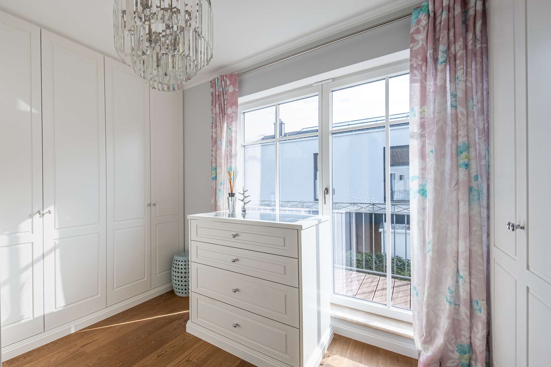 - Massivholz-Eichenparkettböden und elektrische Rollläden