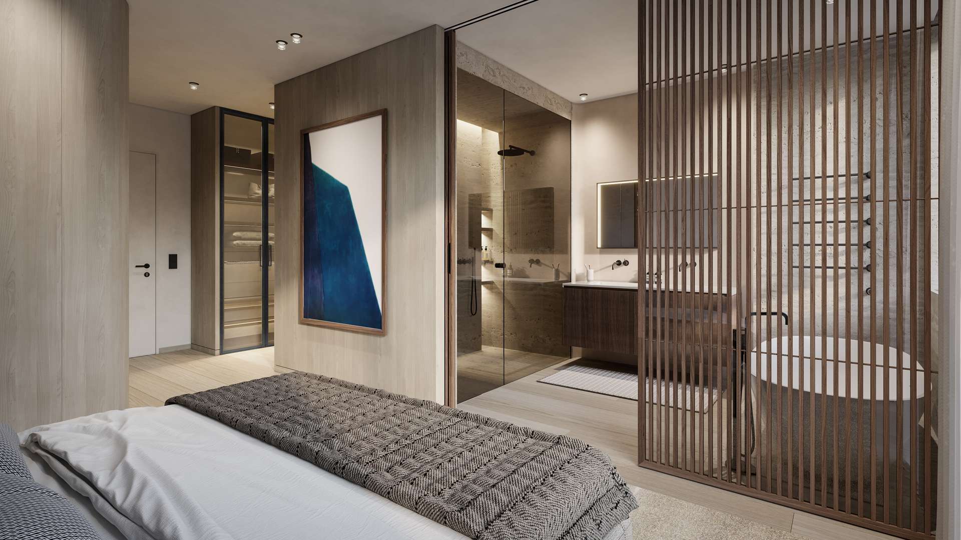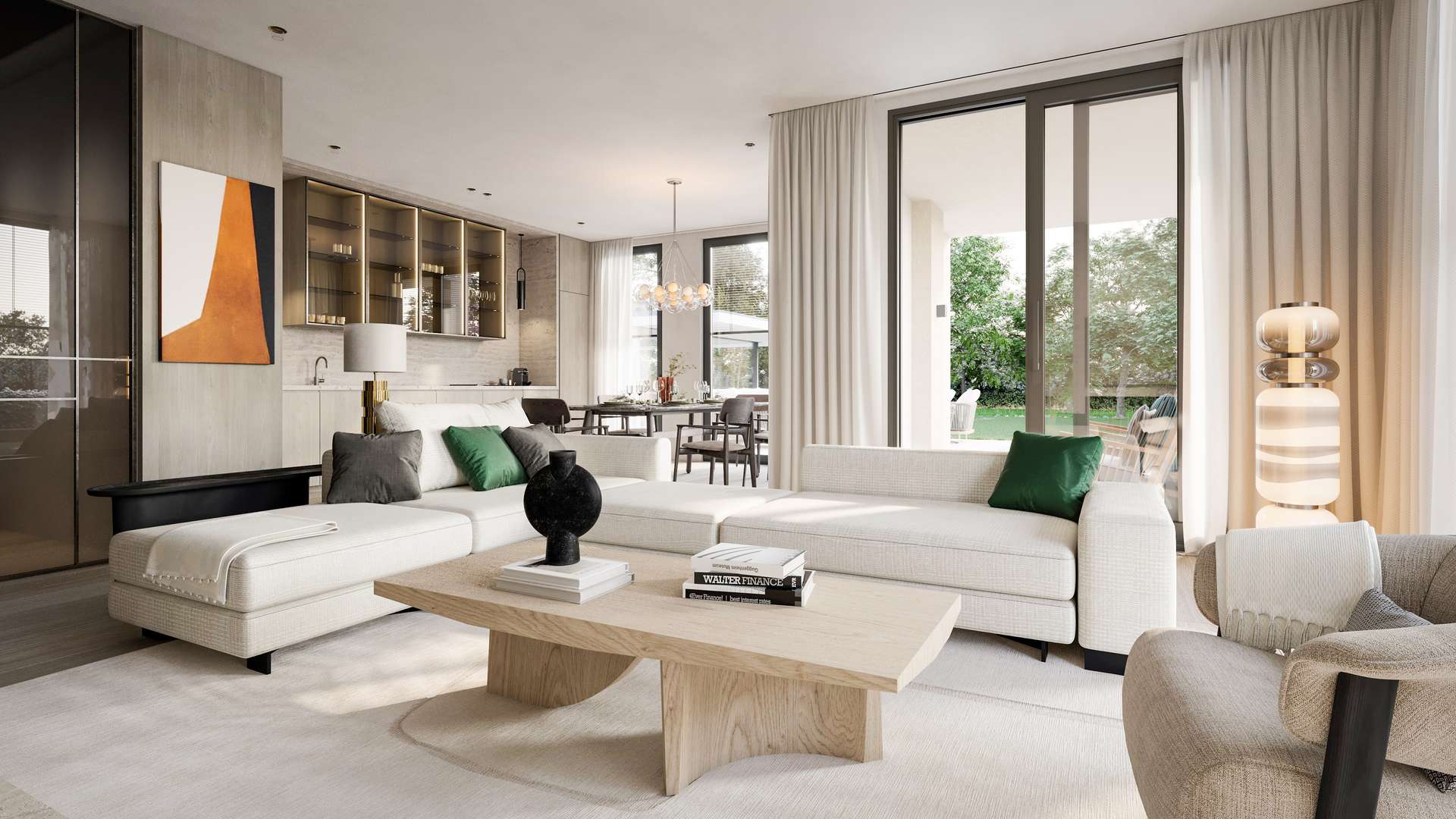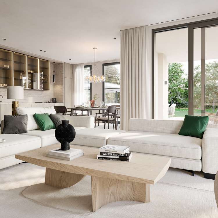 Diese großzügige, im Erstbezug angebotene, außergewöhnlich luxuriöse Gartenwohnung befindet sich im geschichtsträchtigen Münchner Herzogpark, direkt am idyllisch vorbeifließenden Brunnbach und dem angrenzenden Naturschutzgebiet. Auf rund 164 m² entfaltet sich ein Wohnambiente, das Eleganz, Großzügigkeit und absolute Hochwertigkeit harmonisch vereint. Der offen gestaltete Wohn-/Ess-/Kochbereich vermittelt ein erhabenes Raumgefühl und öffnet sich nahezu schwellenfrei zur sonnigen Süd-/Westterrasse – ein privater Rückzugsort, der gleichermaßen für stilvolle Abende wie für ruhige Stunden im Licht der untergehenden Sonne geschaffen ist. Der Masterbereich präsentiert sich als exquisit komponierte Privatsphäre: Schlafzimmer, en-suite Bad mit Fenster und eine edel gestaltete Ankleide formen eine persönliche Wohlfühlzone von beeindruckender Raffinesse. Ein Gäste-WC vervollständigt das Raumangebot auf dieser Ebene. Im direkt begehbaren Souterrain setzt sich das anspruchsvolle Wohnkonzept fort. Großzügig gestaltete Räume, die von hellen Lichthöfen durchflutet werden, eröffnen vielfältige Nutzungsmöglichkeiten – ob als Gästesuite, private Arbeitsoase oder stilvolle Bibliothek. Ein weiteres elegantes Masterbad mit Tageslicht, ebenfalls vom Hausflur erreichbar, rundet diesen Bereich ab. Die Wohnung überzeugt durch eine in jedem Detail spürbare, kompromisslos hochwertige und außergewöhnlich luxuriöse Ausstattung, die das exklusive Wohngefühl eindrucksvoll vollendet.