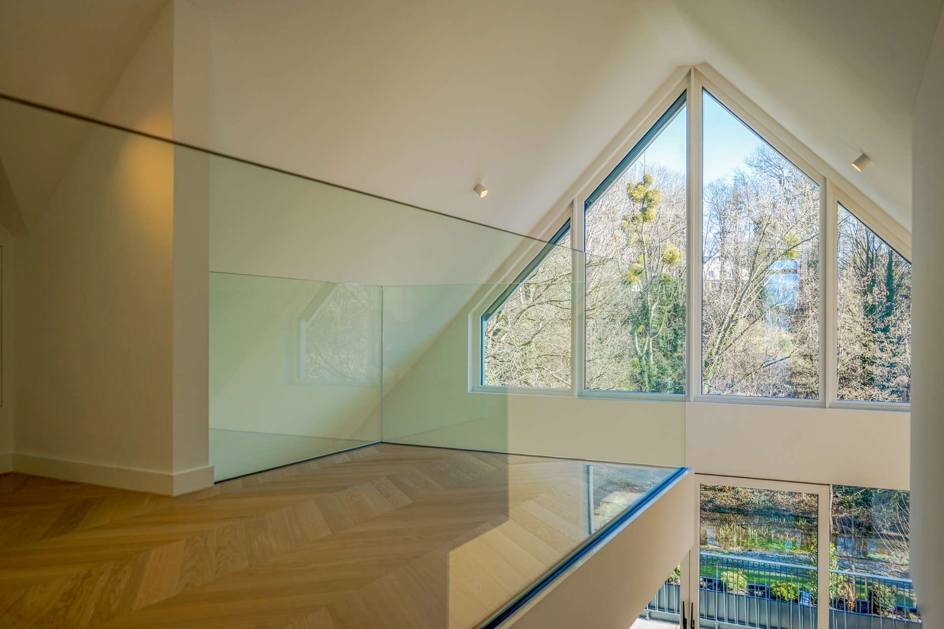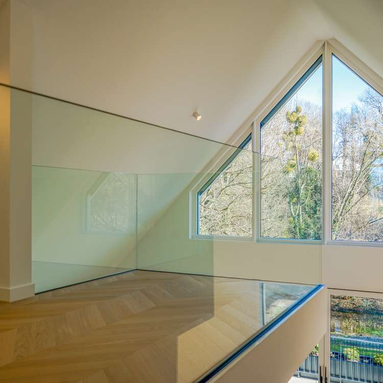 Mitten in einer der prestigeträchtigsten Wohnlagen Münchens, umgeben von der idyllischen Kulisse des leise plätschernden Brunnbachs, präsentiert sich das Highlight eines exklusiven Mehrfamilienhauses mit nur fünf Parteien. Zwei Ebenen, bis zu 6,5 Meter hohe Panoramafenster und der unvergleichliche Blick in die grünen Weiten des Brunnbachparks machen dieses Penthouse zu einem architektonischen Unikat – einzigartig in München. Der lichtdurchflutete Wohn-, Ess- und Kochbereich öffnet sich zu einer großzügigen Terrasse, von der sich der Blick frei über die Baumkronen und ins umliegende Grün öffnet. Back-Kitchen, Hauswirtschaftsraum und Gäste-WC fügen sich dabei harmonisch in den klar strukturierten Grundriss ein. In der oberen Etage beeindruckt die offene Galerie mit ihrer außergewöhnlichen Raumhöhe und schafft ein Gefühl von Weite, das die Architektur eindrucksvoll unterstreicht. Die flexibel nutzbaren Räume auf dieser Ebene bieten vielseitige Möglichkeiten für Wohnen und Arbeiten. Ein zusätzlicher Bereich im Souterrain erweitert das Gesamtangebot und kann ideal als Rückzugs- oder Funktionsraum genutzt werden. Zwei komfortable Einzelstellplätze in der Tiefgarage runden dieses außergewöhnliche Penthouse ab.