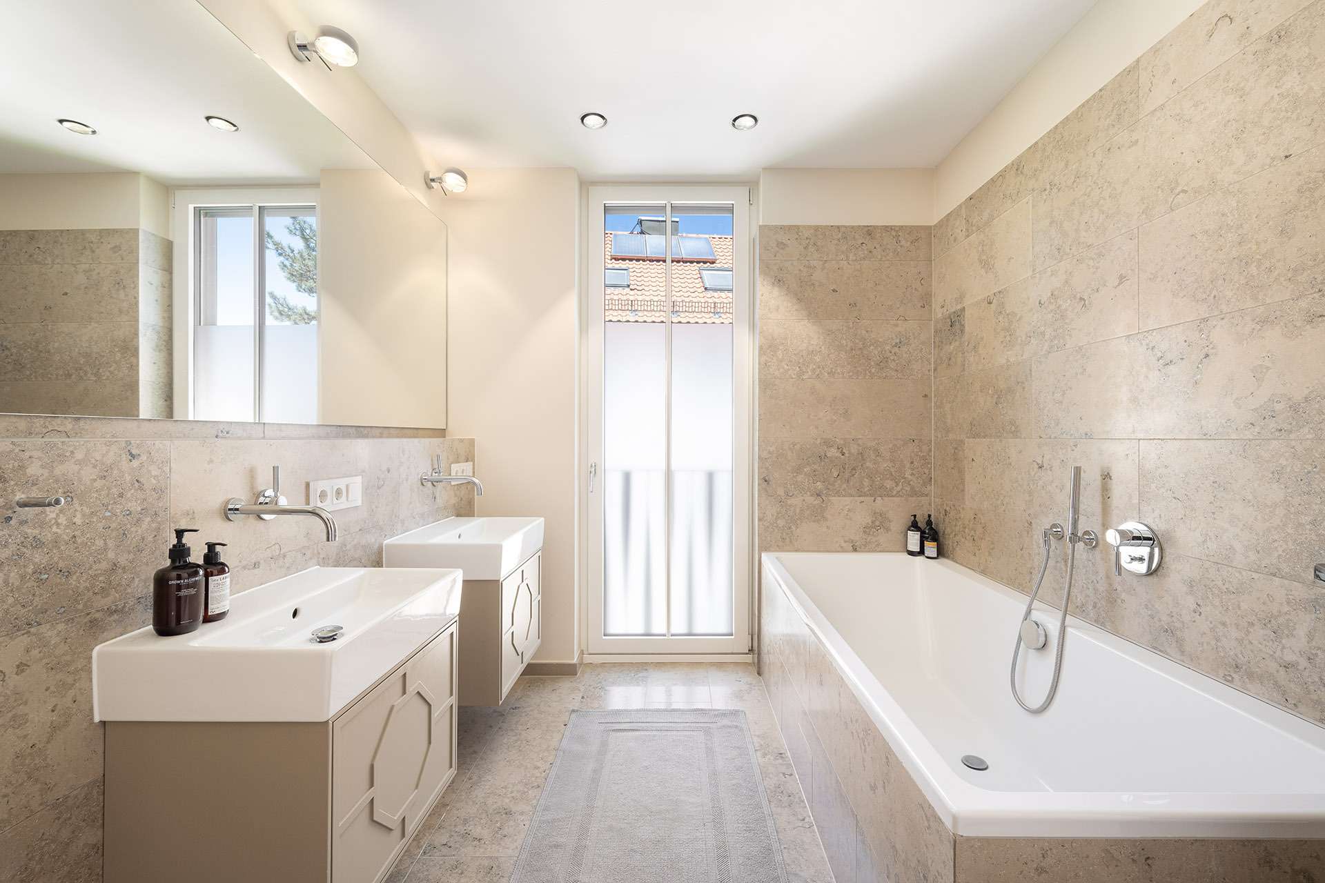 - hochwertige Chrom-Armaturen und Design-Siphon von Dornbracht, Sanitärgegenstände von Villeroy & Boch
