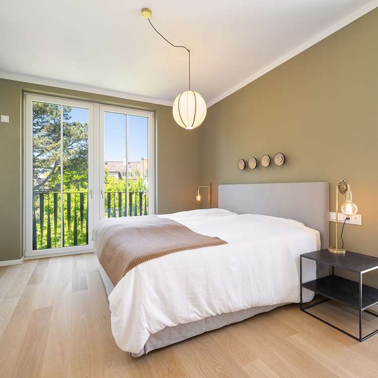Durch den exklusiven Treppenaufgang mit Lift erreicht man die luxuriöse 3-Zimmer-Wohnung auf der zweiten Ebene. Die Räumlichkeiten begeistern durch einen großzügigen und durchdacht gegliederten Grundriss mit edlem Eichenparkettboden, sowie großen, bodentiefen Fensterflächen. Das facettenreiche Raumkonzept erstreckt sich über ca. 133 m² Wohnfläche und teilt sich in einen repräsentativen sowie einen separierten privaten Bereich. Der lichterfüllte Wohn-Ess und Kochbereich präsentiert sich als Herzstück der Stadtresidenz. Vom Wohnbereich hat man direkten Zugang auf die sonnige Süd-West Terrasse mit wunderschönen Sichtachsen in die idyllische und grün eingewachsene Umgebung. Dem ebenfalls sonnigen Essbereich schließt sich ein kleiner Frühstücksbalkon in Ost-Ausrichtung an. Zentraler Mittelpunkt der Wohnung bildet die stilvolle Einbauküche mit großzügigem Küchenblock und hochwertigen Markengeräten von Miele. Der Eingangsbereich wird durch ein Gäste-WC sowie ein separates Duschbad mit Waschmaschinenanschluss vervollständigt. Der private Bereich umfasst zwei großzügige Schlafzimmer mit ebenfalls bodentiefen Fensterfronten, sowie ein modernes und zeitloses Badezimmer mit Walk-In Dusche und Badewanne. Als optisches Highlight wurden in der gesamten Wohnung Schreinereinbauten verbaut, welche einen eleganten und luxuriösen Look widerspiegeln. Das Immobilienangebot wird durch ein Kellerabteil sowie einen Einzeltiefgaragenstellplatz komplettiert.