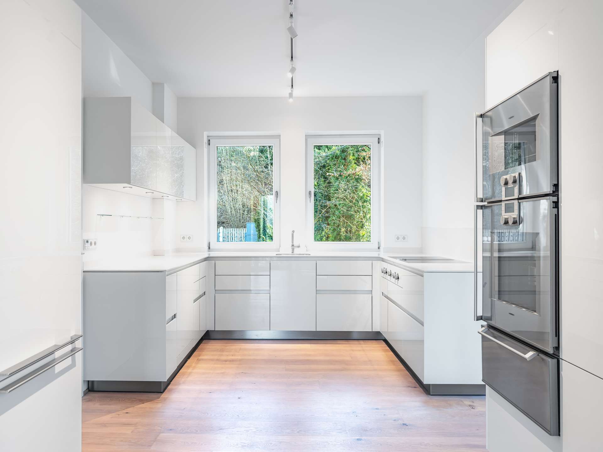 - Bulthaup-Designküche in Weiß mit hochwertigen Gaggenau-Geräten