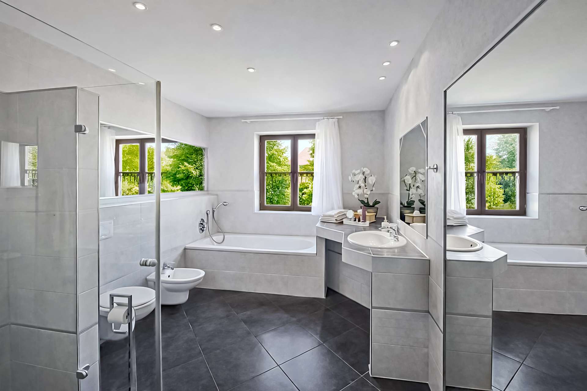 - zwei Badezimmer, eins davon mit separater Badewanne und Glasdusche
