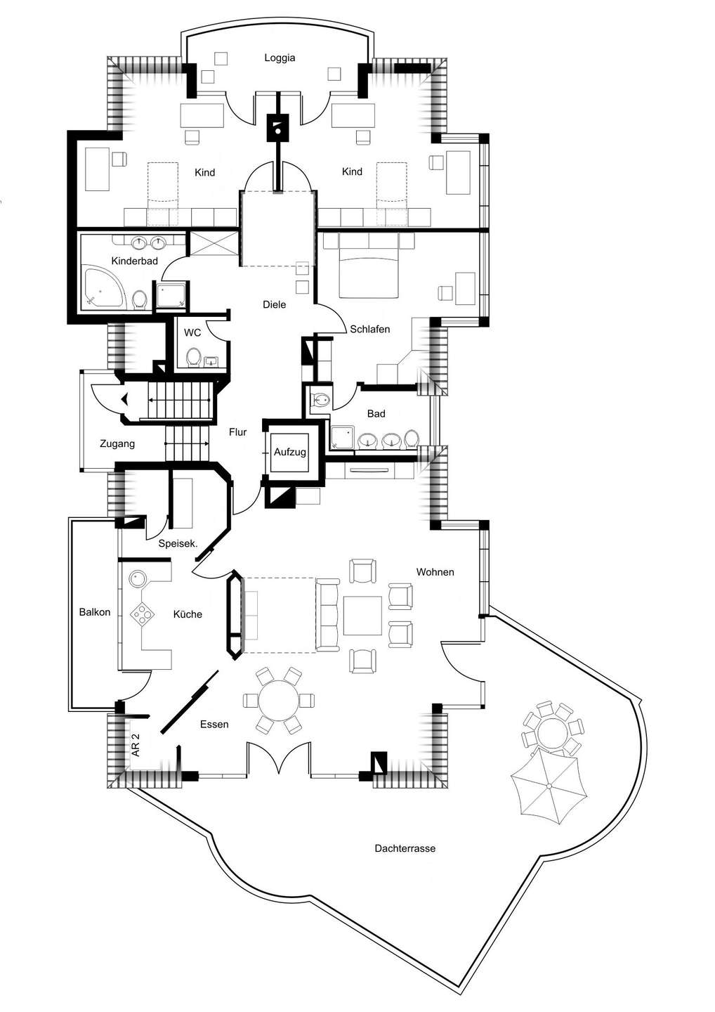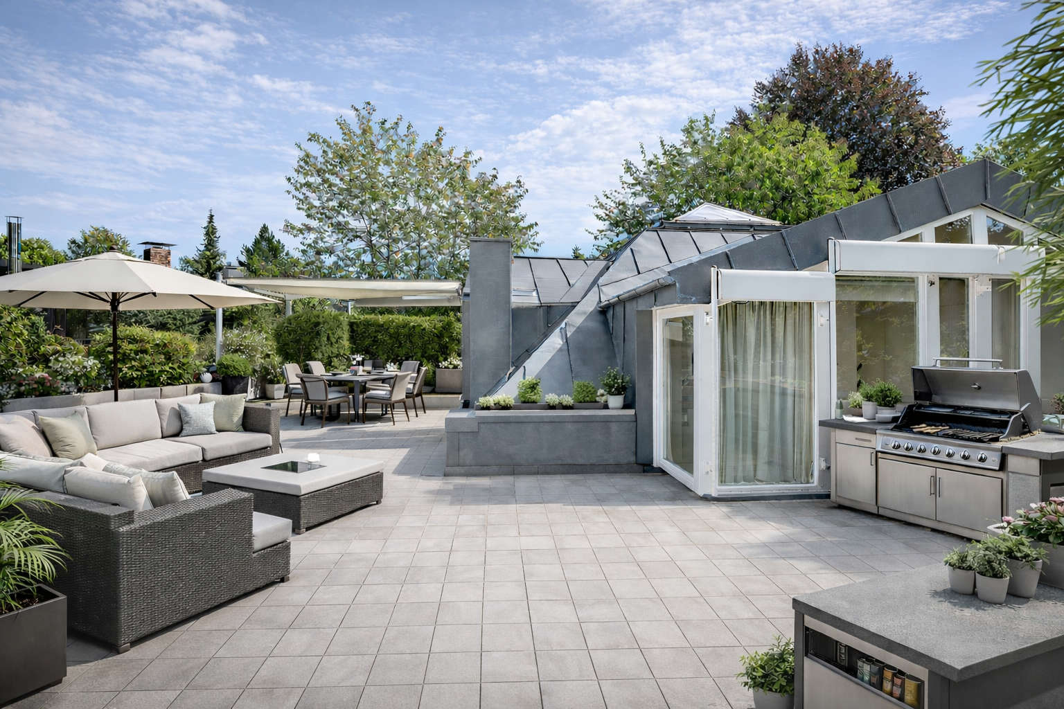 - uneinsehbare Dachterrasse fernab der Straße