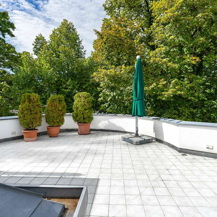 Licht und Raum verschaffen auf ca. 245 m² Wohnfläche ein Wohnumfeld der Extraklasse in einer eleganten Mehrfamilienvilla aus dem Jahr 1996 in absolut ruhiger Bestlagevon Alt-Solln. Großzügige Räumlichkeiten verteilen sich auf einen repräsentativen Wohnbereich mit Lichtkuppel und Zugang auf die ca. 74 m² große Dachterrasse, eine Küche mit Speisekammer und dazugehörigem Balkon, drei als Schlafzimmer nutzbare Räume, zwei Bäder, sowie ein Gäste-WC und einen weiteren Balkon. Die Dachterrassenwohnung widersetzt sich jeglicher Norm und besticht nicht nur mit der besonders weitläufigen Hauptterrasse, sondern bietet auch weitere Außenflächen in jede Himmelsrichtung. Erreicht wird die Wohneinheit sowohl klassisch über das Treppenhaus oder bequem über den Aufzug, welcher aus der Tiefgarage direkt in das Penthouse fährt. Ein eigenes Kellerabteil sowie ein geräumiger Tiefgaragenstellplatz (für zwei PKWs) komplementieren diese Immobilie der Spitzenklasse.