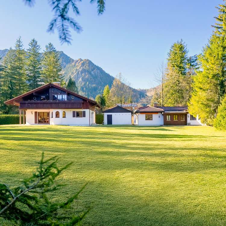 Dem Alltagsstress entfliehen - mit unverbaubarem Blick in die Berge und in traumhaft ruhiger Lage. Das großzügige Grundstück mit ca. 4.376 m² und bezauberndem Bachlauf bietet die perfekte Gelegenheit, die Hektik hinter sich zu lassen und die Schönheit der Natur zu genießen. Ob Sie die Ruhe in Ihrem eigenen Garten suchen, sich beim Wandern oder Radfahren in der Umgebung erholen oder einfach nur die Seele baumeln lassen möchten – die Möglichkeiten sind vielfältig. Das Grundstück ist derzeit mit zwei Gebäuden bebaut, die jeweils getrennt voneinander genutzt werden können. Sie verfügen über eine Wohnfläche von ca. 200 m² und ca. 126 m² und können, je nach Anspruch an Architektur, Innenausstattung und technische Erwartungen, nach einer Renovierung sofort bewohnt werden. Aufgrund der Größe des vorfindbaren Grundstücks besteht auch für den Liebhaber die Wahl einer Neubebauung oder einer Grundstücksteilung mit der Möglichkeit der Bebauung beider Grundstücke mit je einem Wohngebäude. Der gültige Bebauungsplan erlaubt eine offene Bauweise mit maximal zwei Wohneinheiten pro Gebäude und legt die Grundflächenzahl (GRZ) auf 0,16 sowie die Geschossflächenzahl (GFZ) auf 0,25 fest. Ein perfekt erschlossenes, traumhaftes Ensemble inmitten oberbayerischer Gebirgsidylle mit Postkartenblick auf Wendel- und Breitenstein - muss nicht weiter ein Traum bleiben!