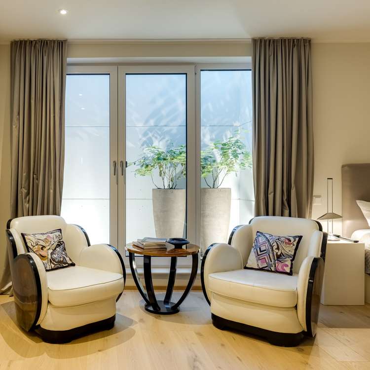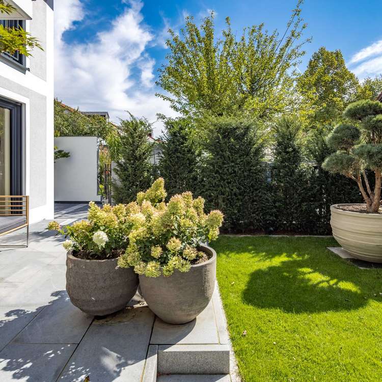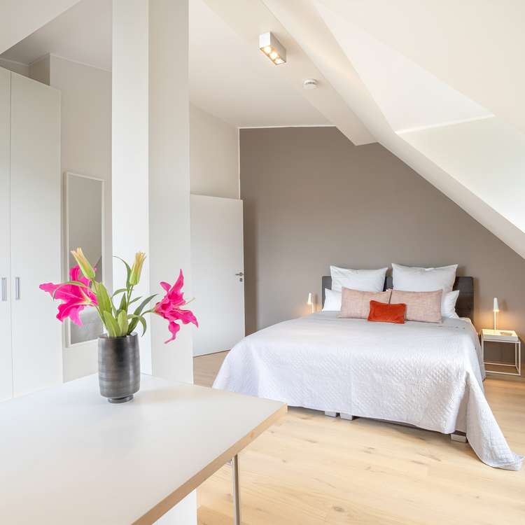 Die absolut außergewöhnlich großzügige Villenhälfte wurde mit Weitblick auf verschiedene Strukturmöglichkeiten geplant und kompromisslos hochwertig gestaltet. Aufgrund der besonderen Gebäudebreite und großen Grundfläche ergibt sich über alle Etagen und Räume eine atemberaubende Großzügigkeit mit Seltenheitswert. Das Ambiente mitsamt der verwendeten Ausstattungsmaterialien ist als äußerst hochwertig und anspruchsvoll zu bezeichnen. Das Flair der Ensemblevilla ist nicht zuletzt Dank vieler großer Fensterflächen absolut hell und lichtdurchflutet. Der Wohn-/Essbereich mit offener Küche im Erdgeschoss ist weitläufig und mit dem vorgelagerten Garten perfekt nach Süden ausgerichtet. Ein weiteres, großes Zimmer, welches beispielsweise als Büro oder Gästezimmer genutzt werden kann, ergänzt das EG. Im 1. Obergeschoss finden sich drei Schlafzimmer mit jeweils einem Bad en suite. Das Dachgeschoss bietet zwei weitere traumhafte Zimmer und ein Badezimmer, sodass sich auf den oberen Etagen insgesamt 5 mögliche Schlafzimmer und 4 Bäder befinden. Das Souterrain verfügt neben den technischen und hauswirtschaftlichen Einrichtungen über ein weiteres Gästezimmer mit Bad und einen Hobbyraum. Die Aufteilung ist sowohl für große Familien als auch für eine gewünschte Strukturierung in mehrere separate Bereiche ausgelegt, sodass bei Bedarf auch eine Einlieger-Situation geschaffen werden kann.