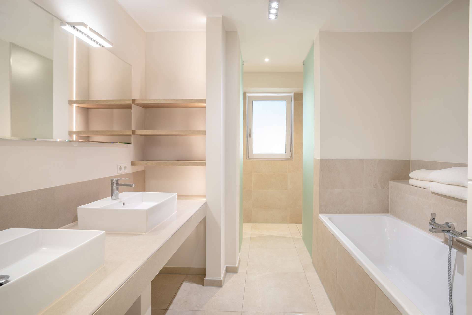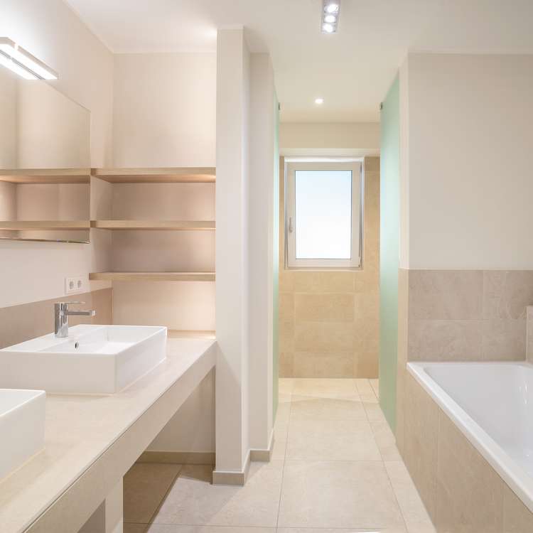 - Elegante Sanitärbereiche mit großformatigem Feinsteinzeug