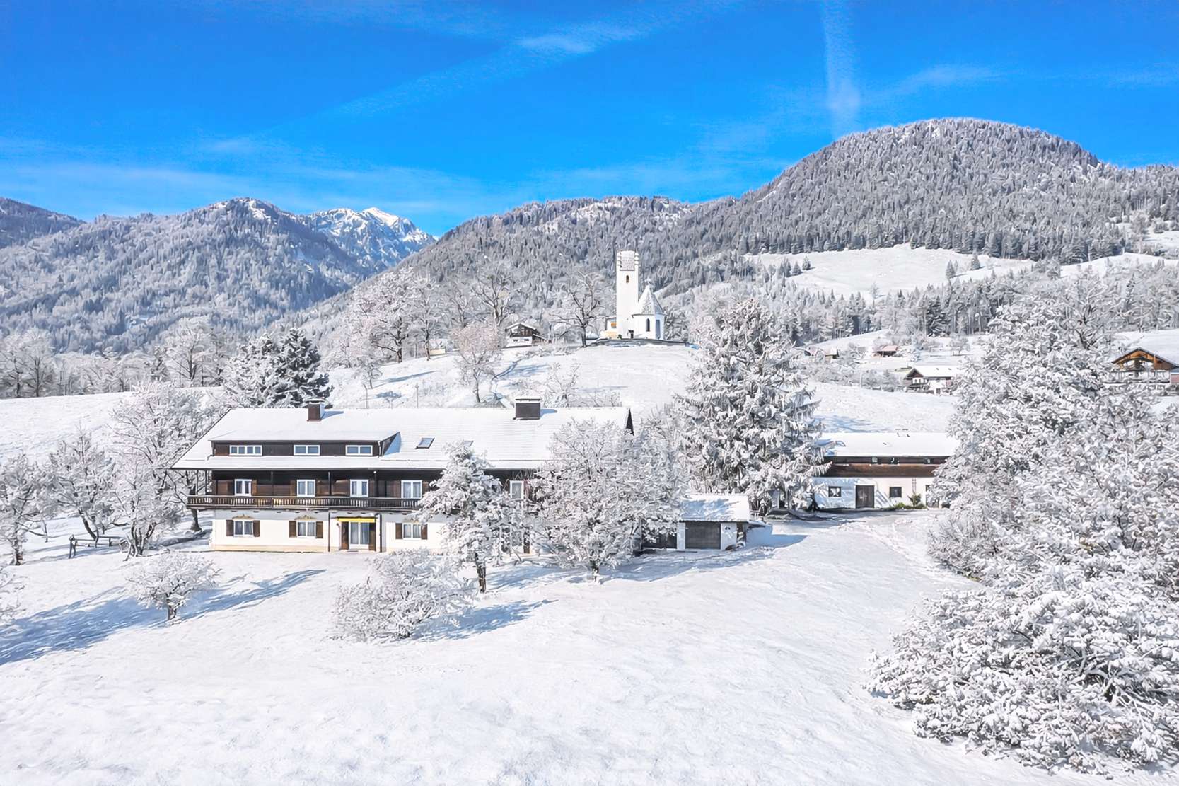 Das geschichtsträchtige Anwesen bietet in seiner Weitläufigkeit einen unvergleichlichen Blick über die umliegenden Täler und Berge und verfügt über mehrere Wohnungen. Insbesondere das Erdgeschoss ist ein wahres Juwel, mit einem gemütlichen Stüberl und einem großes Innen-Schwimmbad, welches perfekt für erholsame Stunden ist. Neben einer äußerst charmanten Scheune sowie einen Außenpool, verfügt die parkähnliche Liegenschaft auch noch über ein weiteres Gebäude, welches als Garage und zusätzliches Appartement genutzt werden kann. Umgeben von wunderschöner Natur genießt man von diesem Familiensitz eine idyllische Atmosphäre, die kaum zu überbieten ist. Trotz des gepflegten Zustands ist eine behutsame Modernisierung anzunehmen, um es an individuelle und zeitgemäße Bedürfnisse anzupassen.
