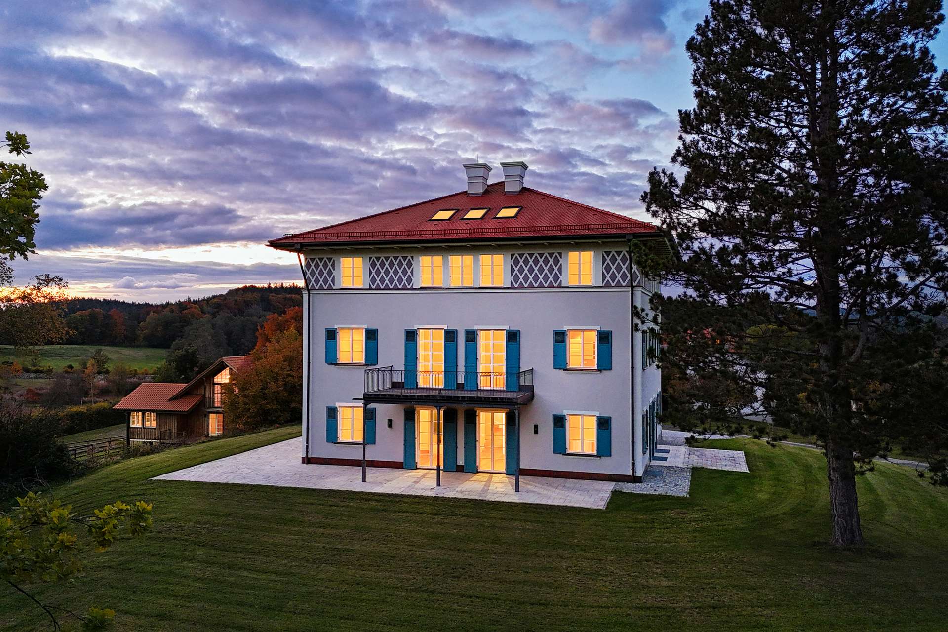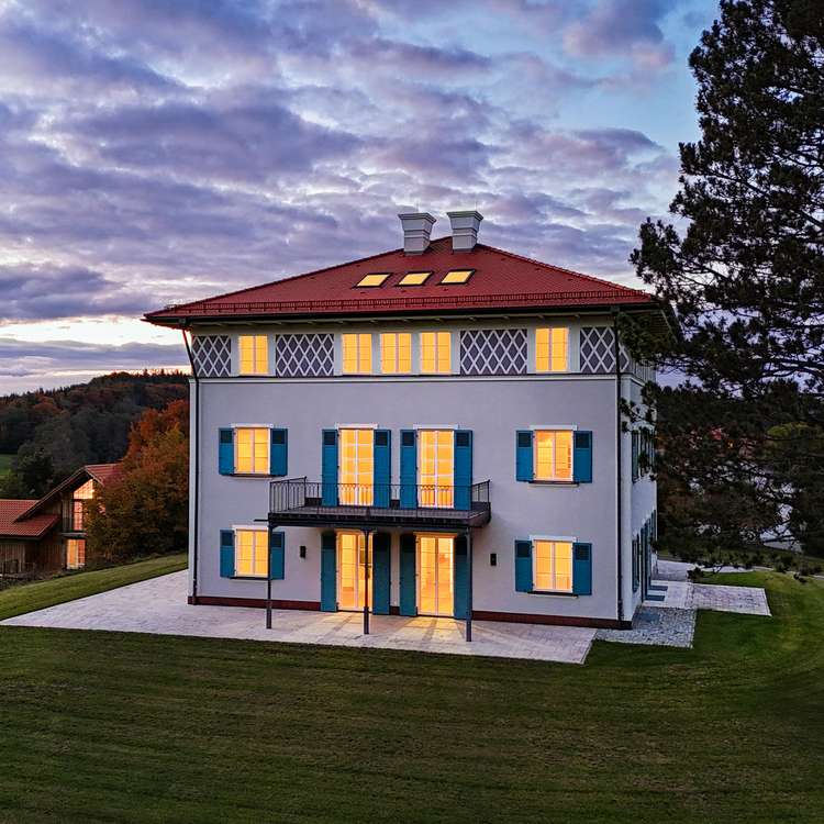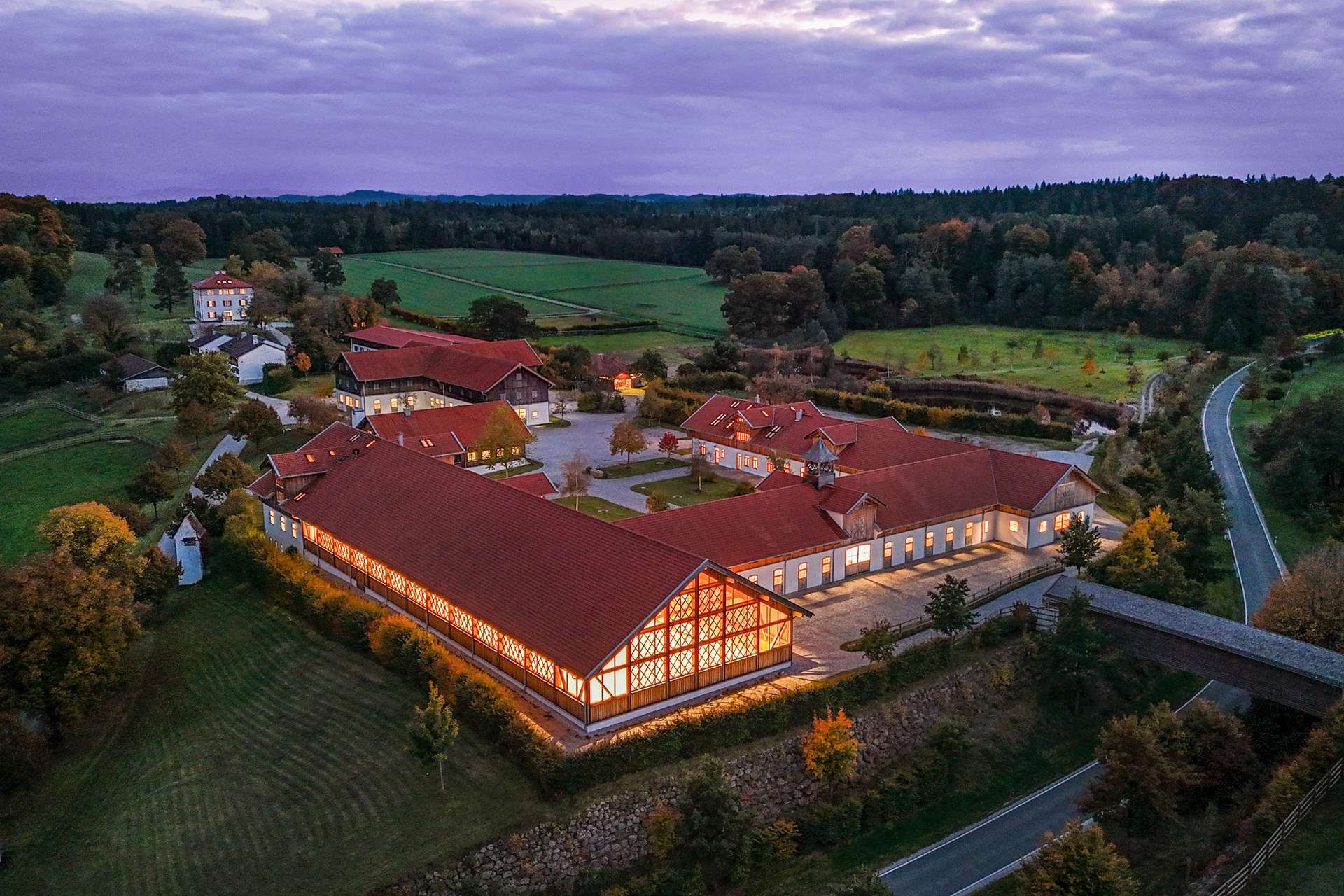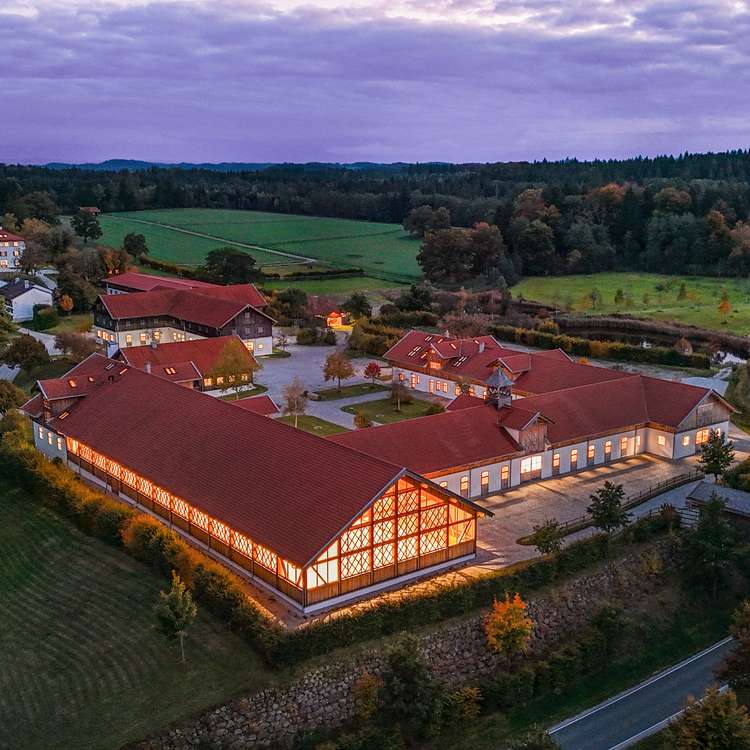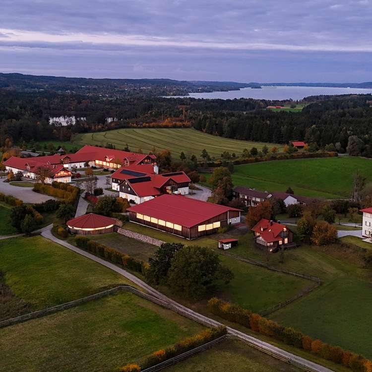 In an absolute dream location, only about 40 minutes from Munich, the property is located in the beautiful Bavarian Alpine foothills, surrounded by meadows, forests and lakes. In perfect scenery and in an absolutely secluded location, the property invites you to live privately on a beautiful stud farm. Enthroned above the grounds, overlooking its own paddocks, is the spectacular villa, which is the private residence on the grounds. The villa has been extensively renovated with great attention to detail and now flourishes in its full splendor in a combination of tradition and modernity. With a living space of approx. 568 m², an impressive living ambience has been created here for the first occupancy, which is particularly unique due to the recurring lines of sight into the surrounding greenery. The spacious three-sided courtyard with large boxes and a light-flooded indoor riding arena forms the center of the complex. The yard offers ideal conditions for professional and successful horse breeding. The combination of spacious stables, extensive paddocks and modern facilities provides an optimal environment for healthy horse breeding. Two indoor riding arenas, an open stable, a horse walker and the prepared riding arenas and sand paddocks create professional standards of the highest quality.