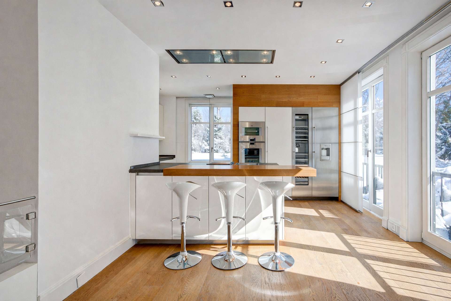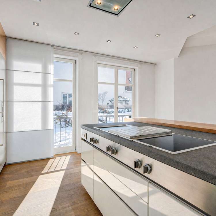 Underfloor heating incl. cooling function Gira Home control unit High-quality oak parquet Gaggenau kitchen incl. Tepanyaki plate Wine refrigerator from Gaggenau Wellness area incl. sauna Floor-to-ceiling windows Highlights: 80m² sun terrace with unique view Fantastic south-west orientation Private garden access 85m² large living-dining area Modern wood fireplace Representative & timeless architecture Two underground parking spaces