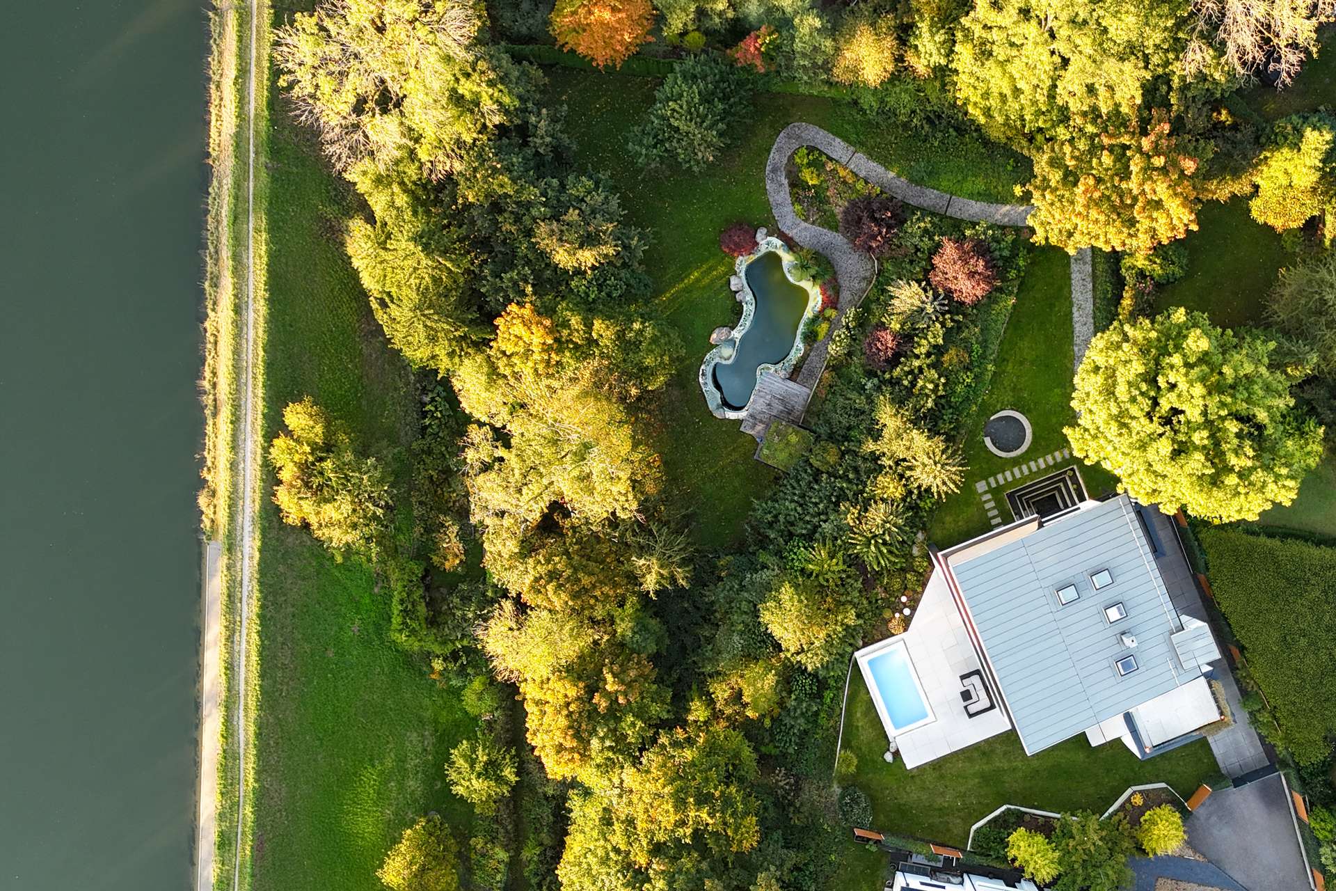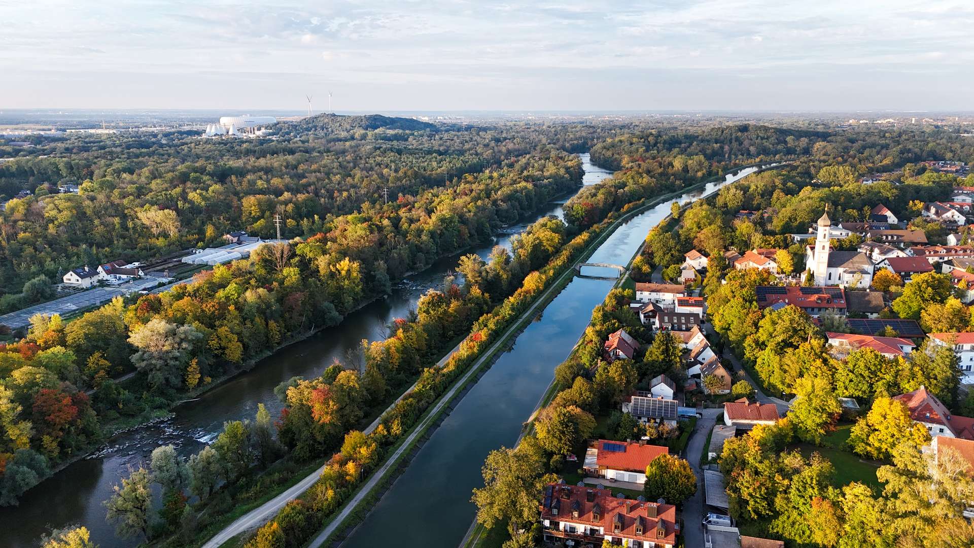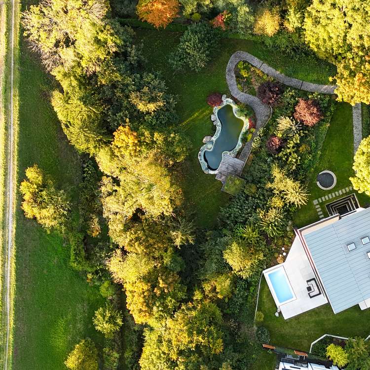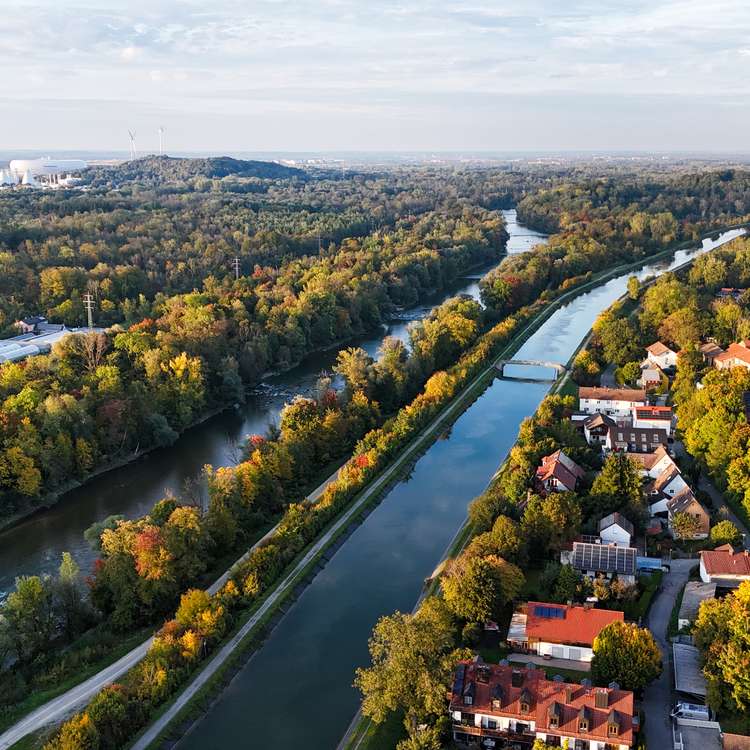In the midst of the impressive natural scenery between the Isar Canal and the English Garden, this extraordinary plateau property is a rare rarity - a location with urban proximity, unspoiled nature and spectacular views. Situated above the Isar floodplains, an incomparable panorama opens up from here: lines of sight stretch from the twin towers of Munich's Frauenkirche church to the Olympic Park and the Allianz Arena - a picturesque view that is second to none. Embedded in the green ribbon along the Isar and directly adjacent to the Isar Canal, the idyllic location is further emphasized by a natural stream that runs charmingly parallel to the property. The private cul-de-sac location of the residential street guarantees an exceptionally quiet living atmosphere - shielded, close to nature and discreet. Numerous cycle and walking paths lead directly to the English Garden or along the Isar to Munich city center. Local recreational areas such as Unterföhringer See or Feringasee are just a few minutes away and offer a wide range of leisure activities. At the same time, the location boasts excellent infrastructural connections: The proximity to the S8 S-Bahn line, the A9 and A99 highways and the short distance to the airport make it easy to reach in all directions. Probably the best way to get to the city center, however, is by bike - through the English Garden, along the Isar, right into the heart of Munich. Unterföhring is a prime example of the successful combination of natural idyll, excellent quality of life and economic dynamism - a location with charisma and prospects.