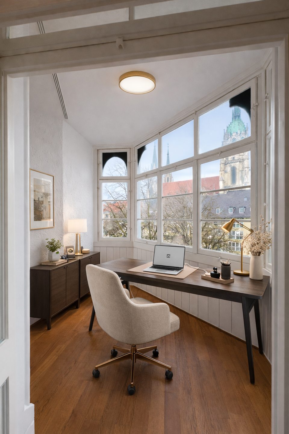 This special office or studio property is in an absolutely central location directly on the Theresienwiese and combines an urban environment with a prestigious working atmosphere. The "Theresienwiese" subway station is just a two-minute walk away, while numerous restaurants, cafés and a wide range of shopping facilities in the immediate vicinity guarantee an excellent infrastructure. The unit is located on the 3rd floor of a stately and extremely prestigious old building, whose stylish character can be felt as soon as you enter the impressive staircase with its historical decorations. The space itself consists of a spacious, open room with high-quality parquet flooring, which offers a variety of uses as an office, studio or atelier. Large windows open up a beautiful view of the neighboring church and also provide a bright, inspiring working atmosphere. The space is complemented by a modern shower room. Due to special security regulations in the building, public access is only possible to a very limited extent. It is therefore not conceivable, for example, to use the space as a practice or for short-term rentals.