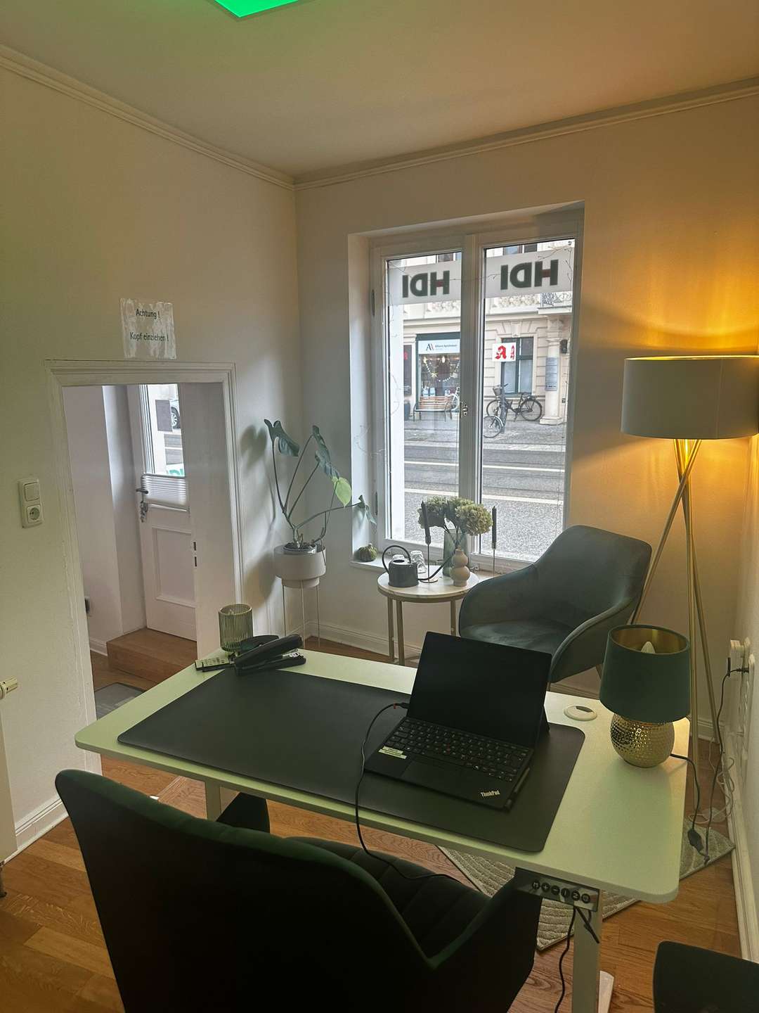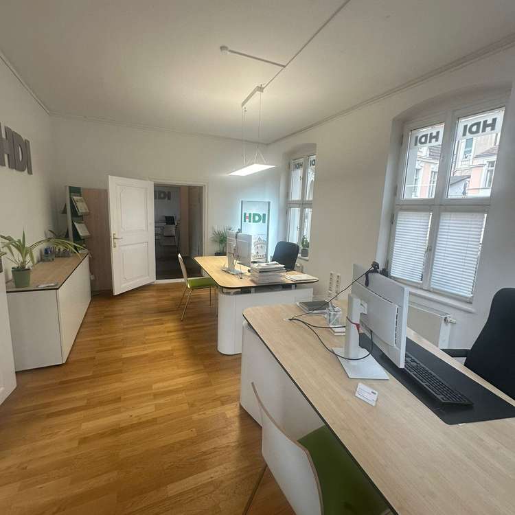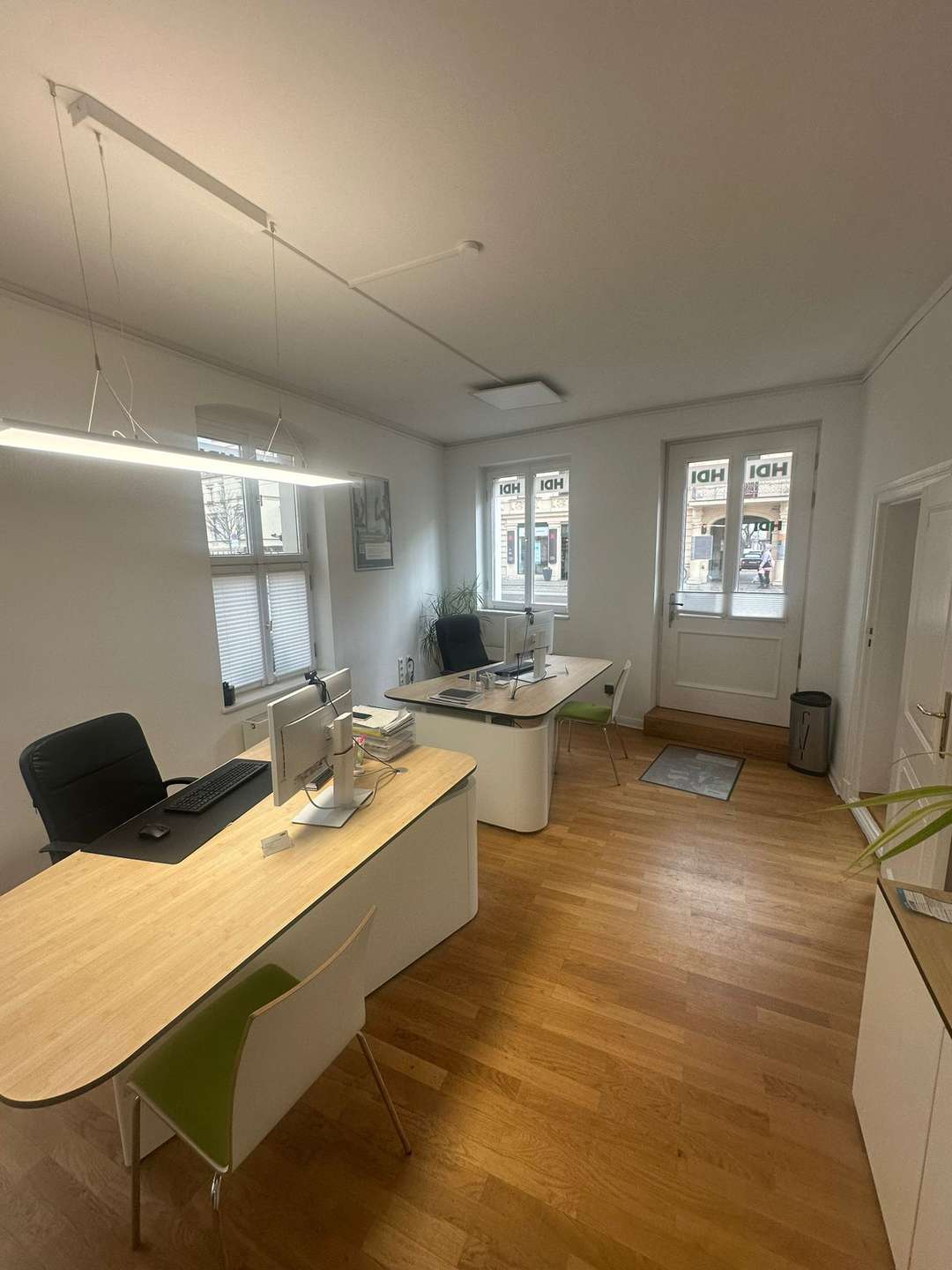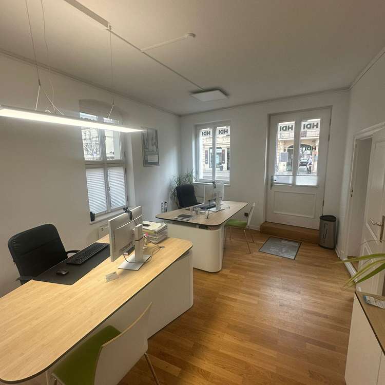 Das charmante und repräsentative Büro liegt im linken Seitenflügel des prachtvollen Stadtschlosses in der Friedrich-Ebert-Straße und ist in einem hervorragenden Zustand. Der Eichenparkettboden erstreckt sich über die gesamte Einheit. Das Büro ist mit einer Teeküche und getrennten WCs für Damen und Herren ausgestattet. Die Einheit verfügt sowohl über einen straßenseitigen Eingang für den Publikumsverkehr als auch über einen Seiteneingang, der zum Innenhof führt. Vom Vorraum aus gelangt man in einen kleinen Gewölbekeller, der sich als Lagerraum eignet.