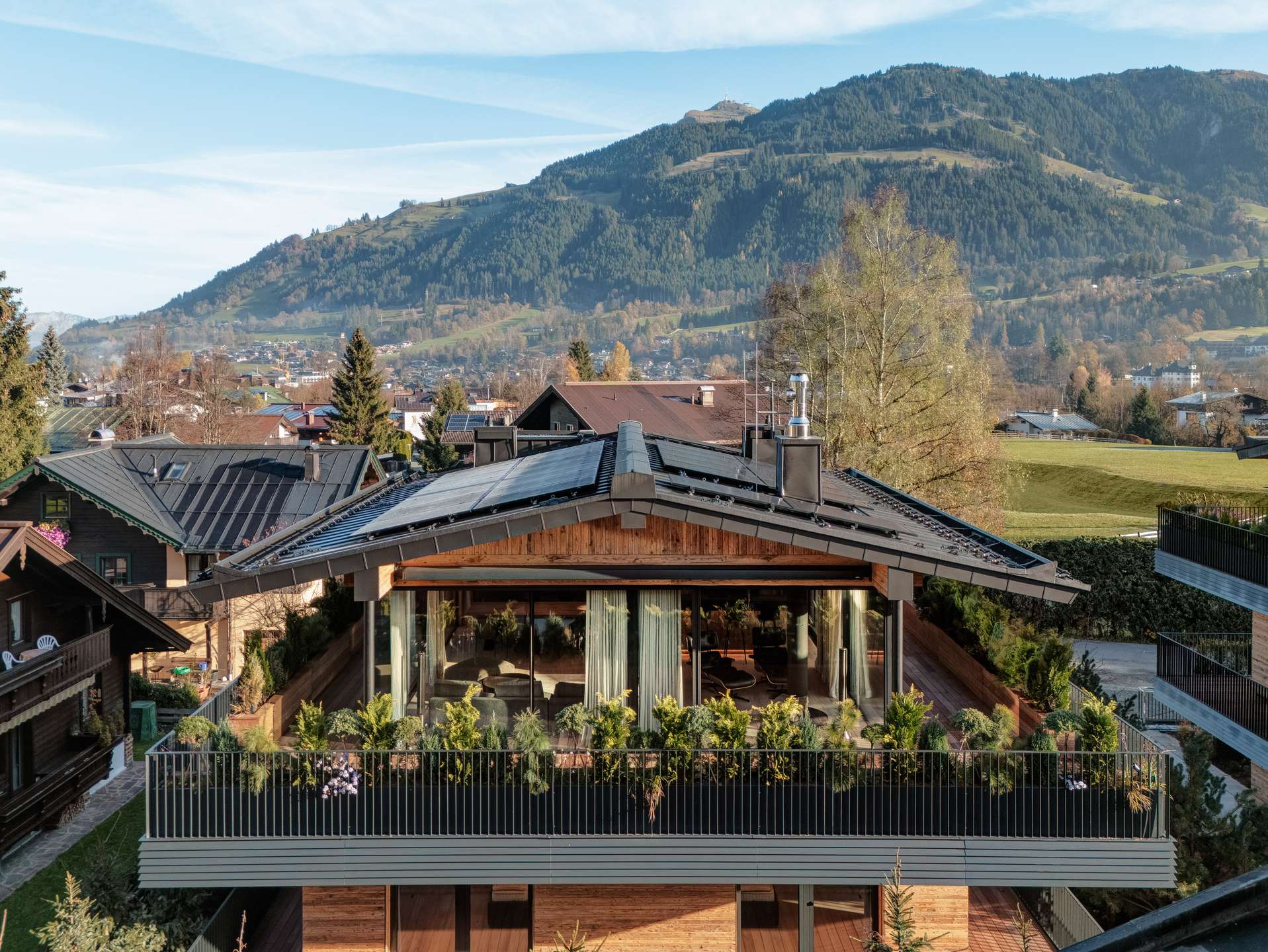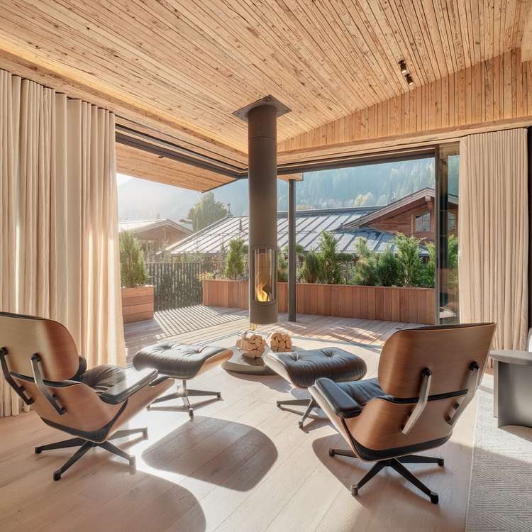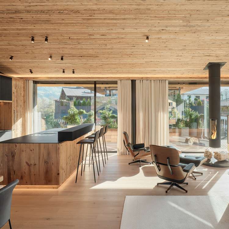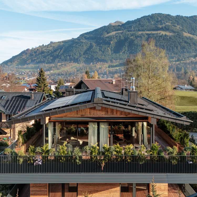 Located within walking distance of the city center unmistakable views of the Wilder Kaiser East-facing terrace for sunny mornings suspended ceiling fireplace as a design icon in the living area Exclusive underground parking garage and outdoor parking spaces for private vehicle fleet Wine cellar for culinary evenings Private spa area with rain shower, sauna and relaxation area Large window fronts for views of the Tyrolean countryside Designer kitchen for the highest demands Vacation residence certificate for Regent chalet Future-oriented energy supply through photovoltaic system
