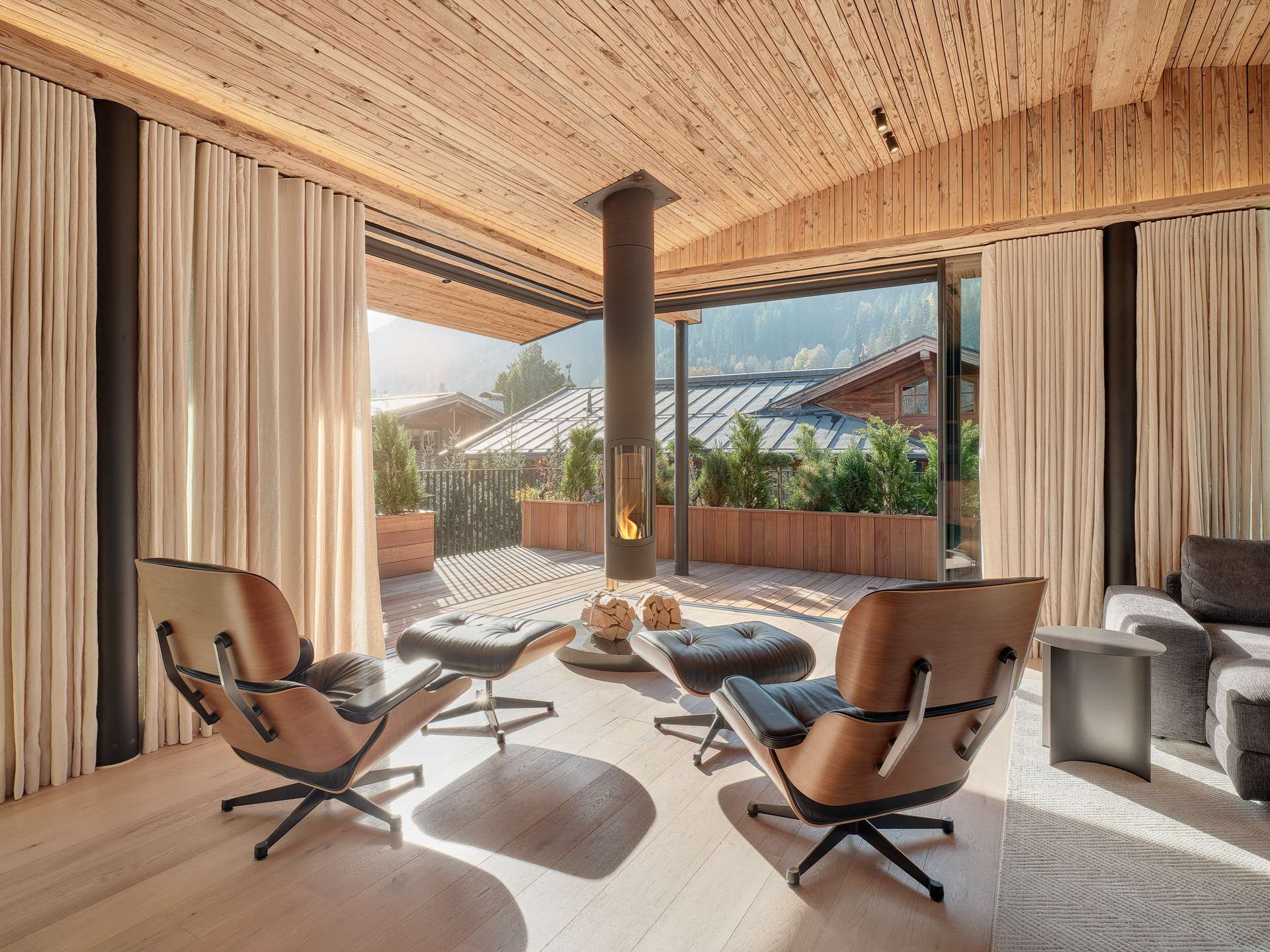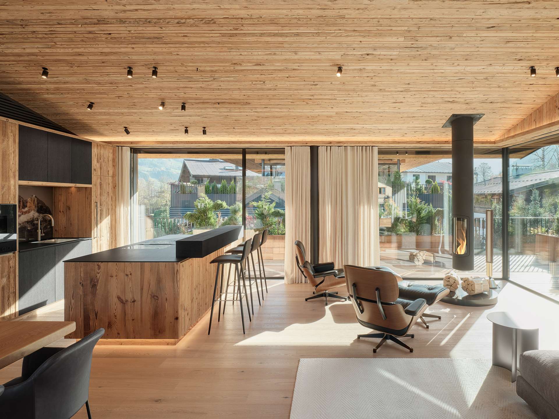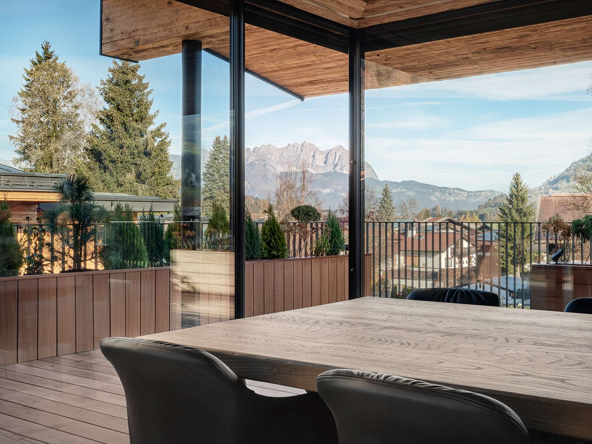 Located within walking distance of the city center unmistakable views of the Wilder Kaiser East-facing terrace for sunny mornings suspended ceiling fireplace as a design icon in the living area Exclusive underground parking garage and outdoor parking spaces for private vehicle fleet Wine cellar for culinary evenings Private spa area with rain shower, sauna and relaxation area Large window fronts for views of the Tyrolean countryside Designer kitchen for the highest demands Vacation residence certificate for Regent chalet Future-oriented energy supply through photovoltaic system