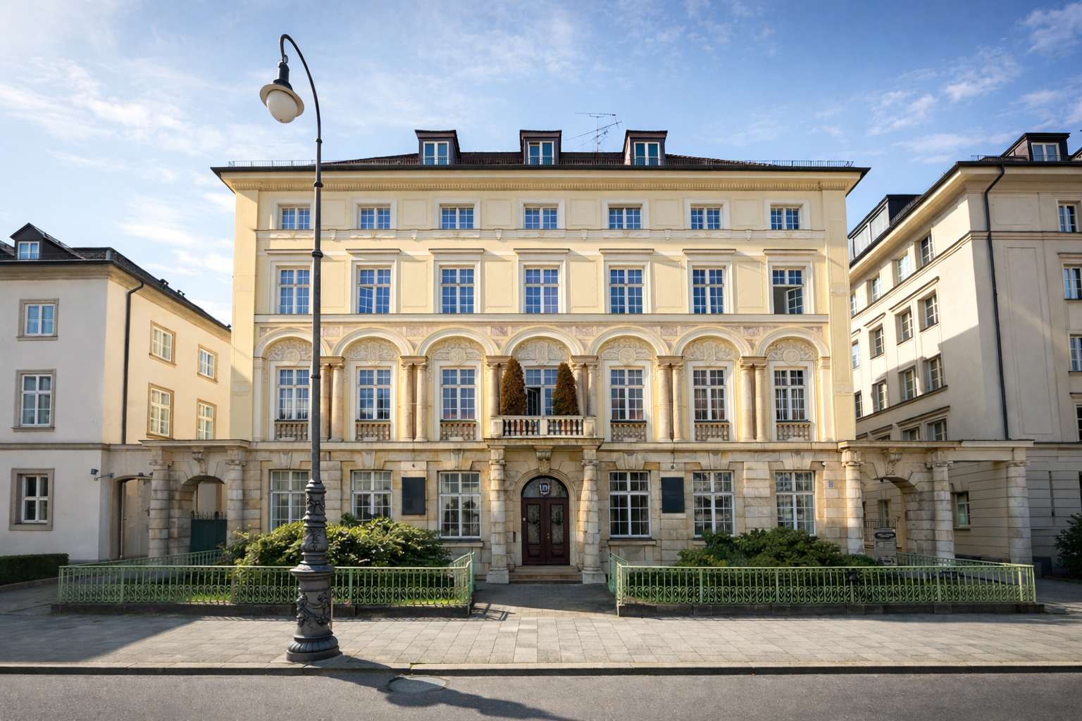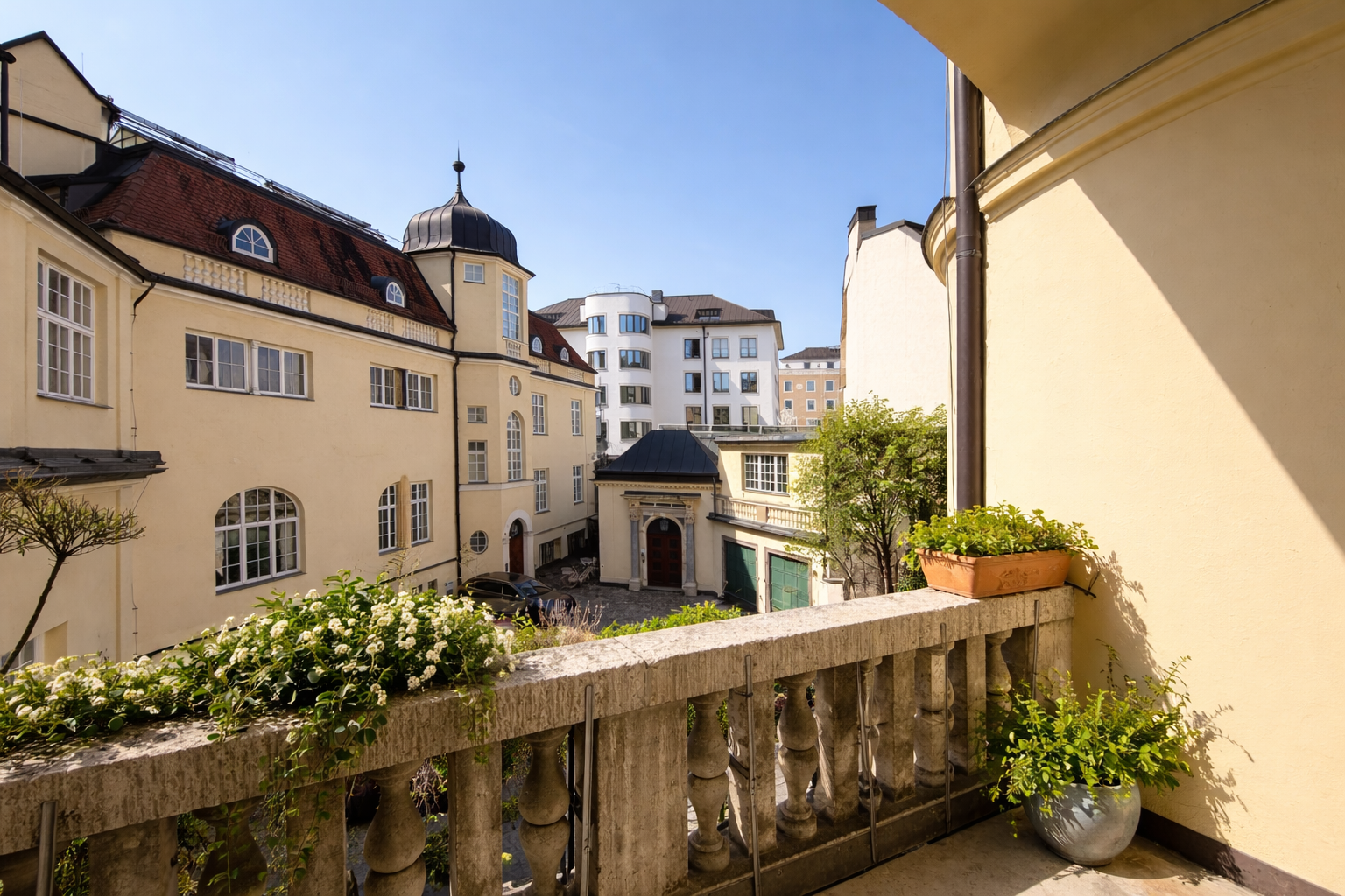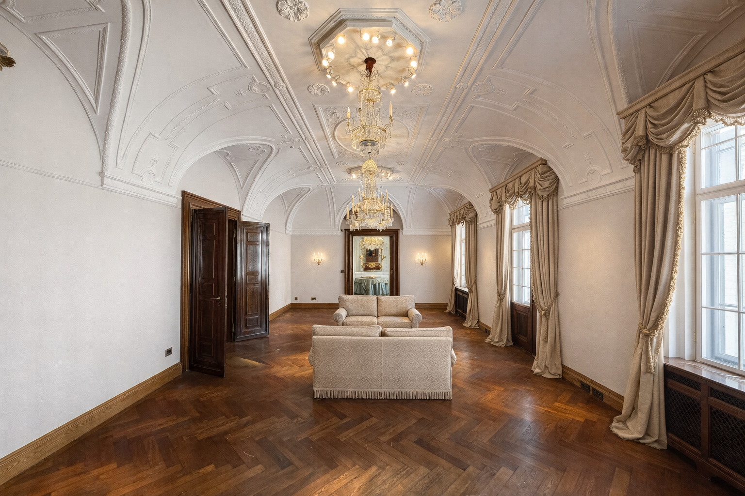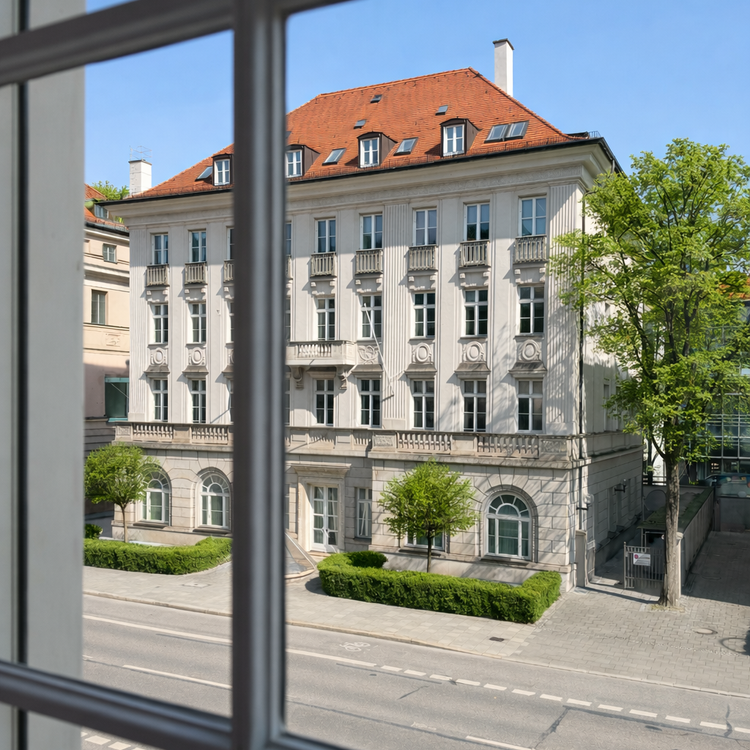 This exceptional commercial property of outstanding historical and architectural quality is located in the heart of Munich, directly on the prestigious Brienner Strasse. The property is ideally suited for sophisticated uses - for example as an exclusive office, stylish showroom or exhibition space for high-quality products. Most recently used as an art dealership, the property offers an atmosphere that combines seriousness, value and cultural depth in a special way. Built around 1903 according to plans by Gabriel von Seidl for the art and antiques dealer Julius Böhler, the building is considered an important example of a Munich art dealer's house from the turn of the century. The neo-Renaissance building still characterizes the appearance of Brienner Strasse today and blends harmoniously into the neoclassical ensemble. The front building has the clear form of an Italian palazzo with an elaborately designed façade made of natural stone and stucco. The exceptionally well-preserved original condition - inside and out - makes the house a rare time capsule of its era. The unit located on the second floor - classically conceived as a bel étage - presents itself as an extremely prestigious space with impressive room heights and furnishings of particular rarity. Artfully crafted stucco ceilings, elaborate wood carvings and fine wall paneling lend the rooms an unmistakable aura. Historic, listed box-type windows and balcony doors underline the authentic character, while herringbone parquet flooring and stylish details, such as three fireplace rooms, impressively round off the high-quality interior design. The space is equipped to a contemporary standard both functionally and technically: an elevator provides convenient access to the building and the heating is provided by district heating. In addition, there is a fitted kitchen, two separate WCs, an alarm system and a balcony. A parking space in the inner courtyard offers additional convenience. A warehouse is also available in the rear building. In the case of a VAT-free letting, the monthly basic rent increases to EUR 14,757. Please note that the actual colour schemes of the rented rooms differ from the deliberately neutralized representations shown in the exposé.