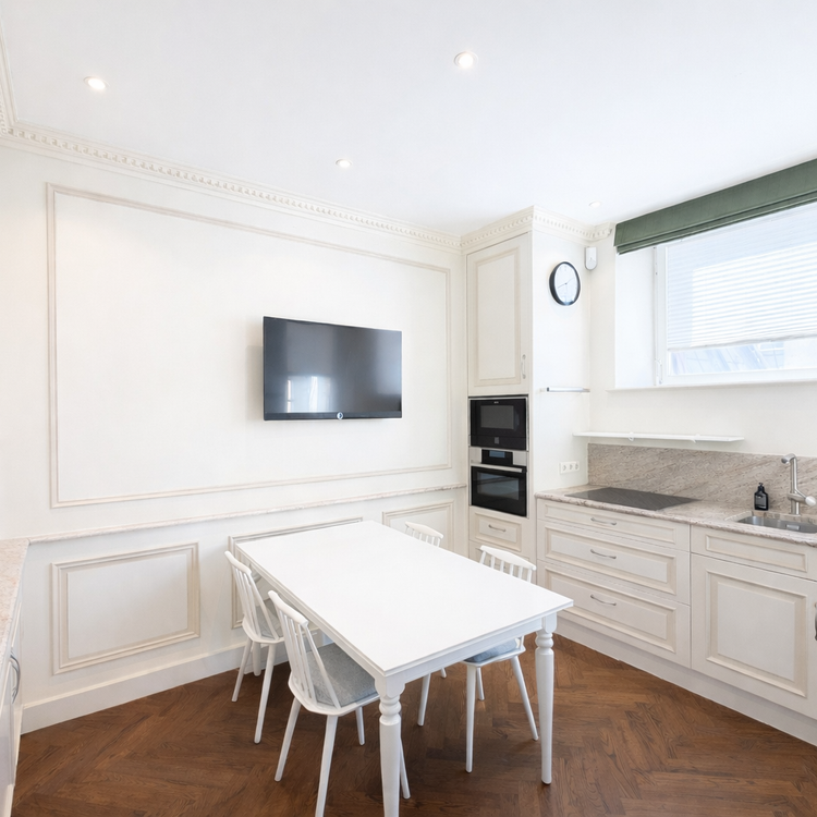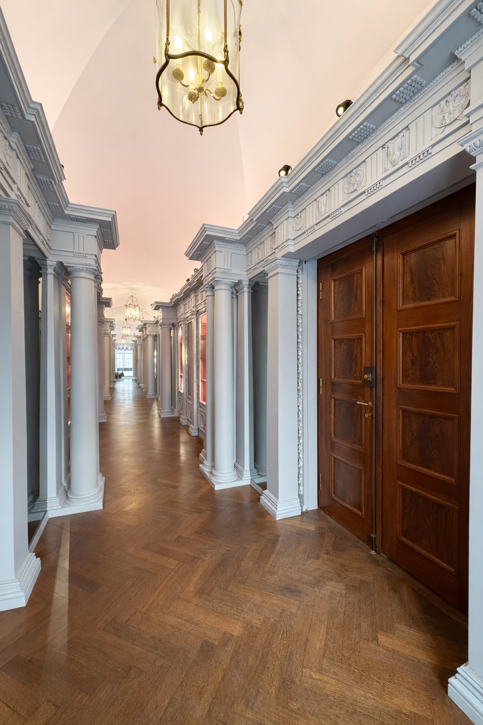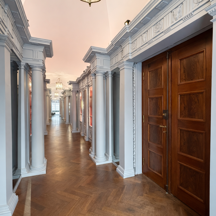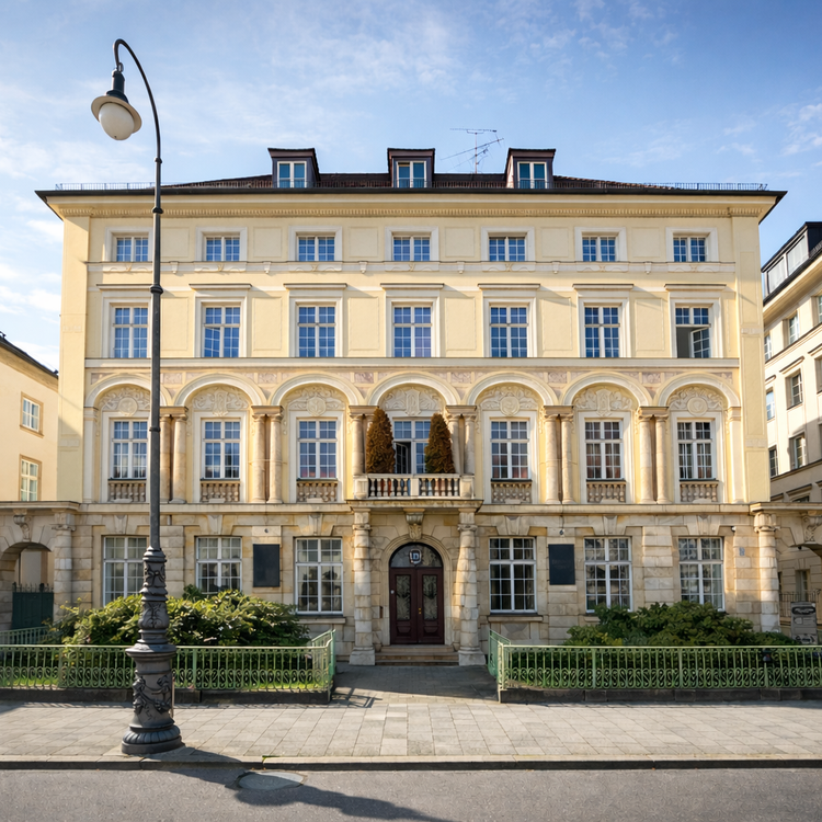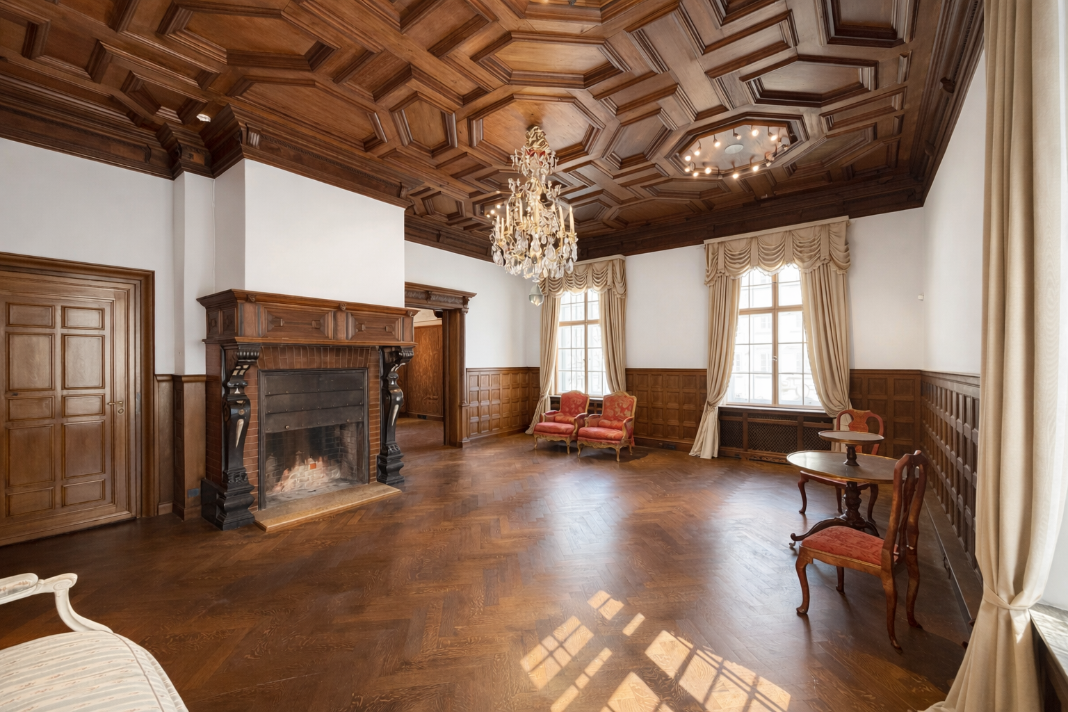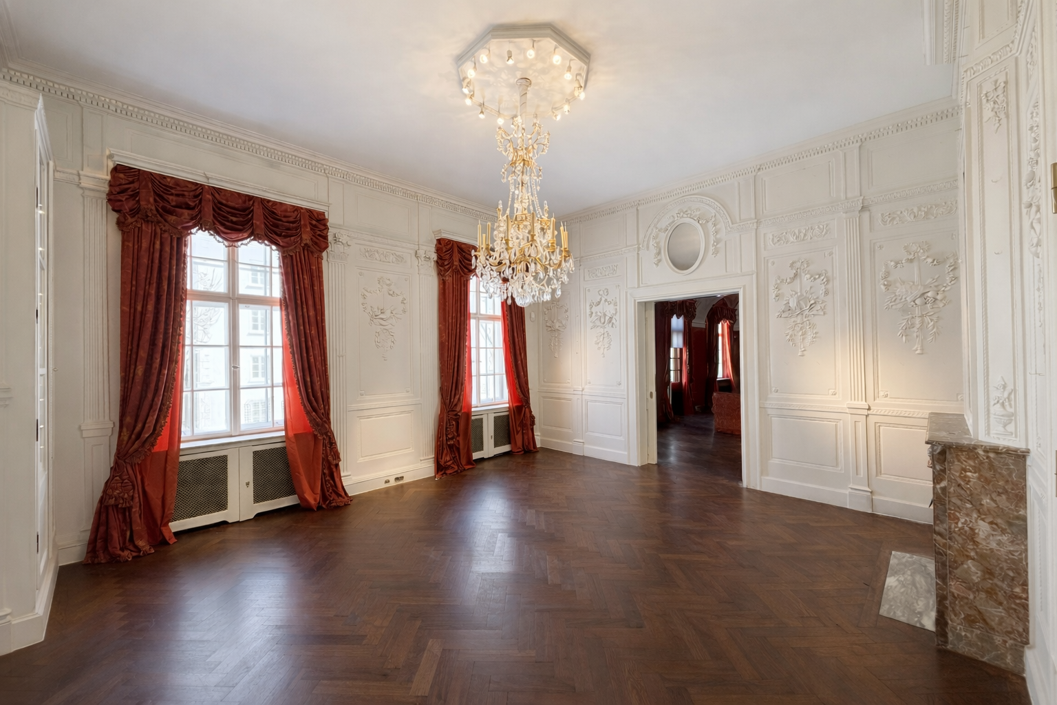 This exceptional commercial property of outstanding historical and architectural quality is located in the heart of Munich, directly on the prestigious Brienner Strasse. The property is ideally suited for sophisticated uses - for example as an exclusive office, stylish showroom or exhibition space for high-quality products. Most recently used as an art dealership, the property offers an atmosphere that combines seriousness, value and cultural depth in a special way. Built around 1903 according to plans by Gabriel von Seidl for the art and antiques dealer Julius Böhler, the building is considered an important example of a Munich art dealer's house from the turn of the century. The neo-Renaissance building still characterizes the appearance of Brienner Strasse today and blends harmoniously into the neoclassical ensemble. The front building has the clear form of an Italian palazzo with an elaborately designed façade made of natural stone and stucco. The exceptionally well-preserved original condition - inside and out - makes the house a rare time capsule of its era. The unit located on the second floor - classically conceived as a bel étage - presents itself as an extremely prestigious space with impressive room heights and furnishings of particular rarity. Artfully crafted stucco ceilings, elaborate wood carvings and fine wall paneling lend the rooms an unmistakable aura. Historic, listed box-type windows and balcony doors underline the authentic character, while herringbone parquet flooring and stylish details, such as three fireplace rooms, impressively round off the high-quality interior design. The space is equipped to a contemporary standard both functionally and technically: an elevator provides convenient access to the building and the heating is provided by district heating. In addition, there is a fitted kitchen, two separate WCs, an alarm system and a balcony. A parking space in the inner courtyard offers additional convenience. A warehouse is also available in the rear building. In the case of a VAT-free letting, the monthly basic rent increases to EUR 14,757. Please note that the actual colour schemes of the rented rooms differ from the deliberately neutralized representations shown in the exposé.