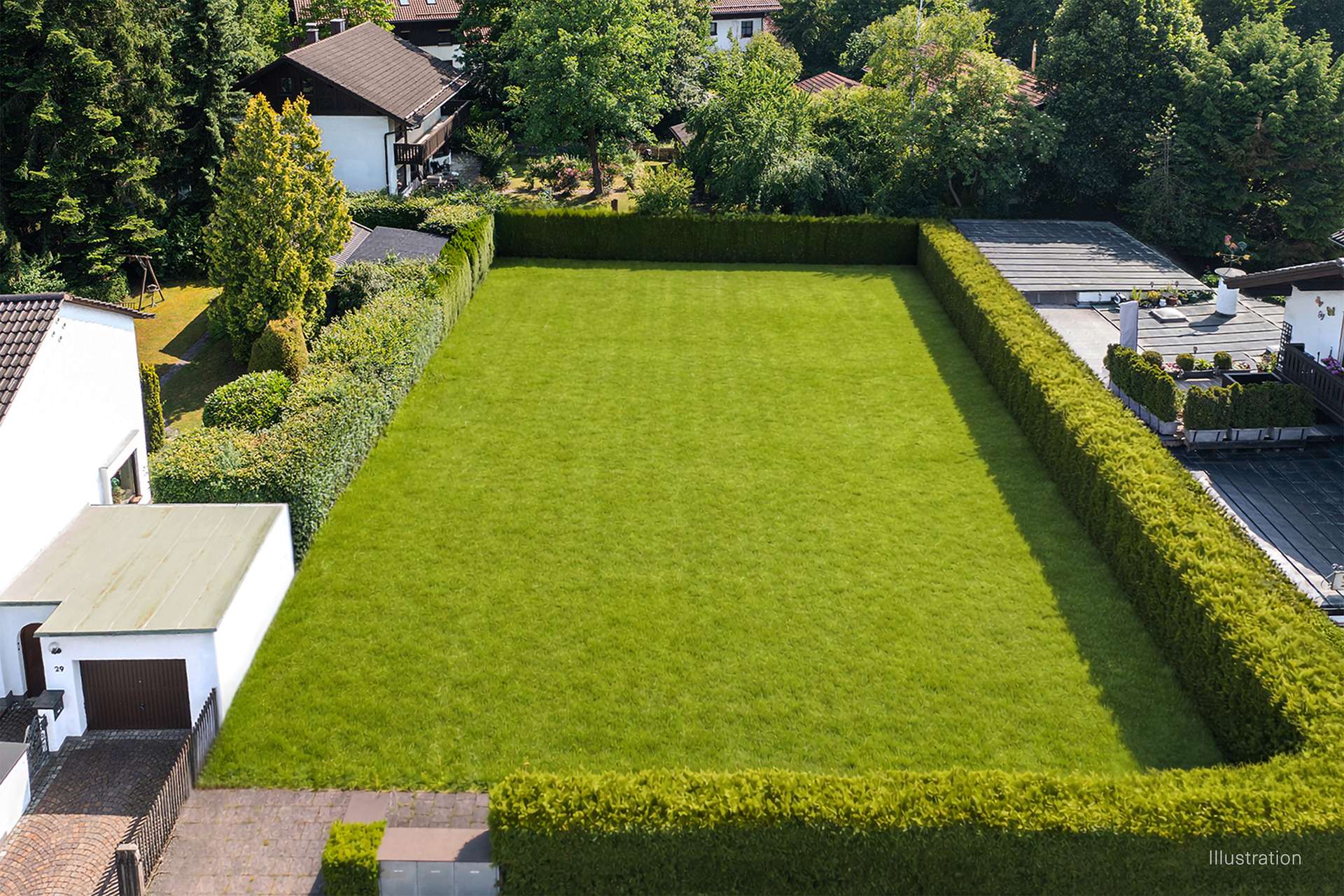 As a result of the constantly growing demand for living space in Munich, the importance of the surrounding communities has been steadily increasing for years. Oberhaching, with its districts of Deisenhofen, Furth and Kreuzpullach, is an ideal example of consistent yet cautious development. Despite modernity, the character of the districts and the building structure have been preserved. At the same time, the municipality consciously promotes the settlement of medium-sized companies (not least through the favorable trade tax rate). In addition to the rural atmosphere, lively shopping streets in the town center provide a pleasant urban flair. Numerous restaurants and pubs - including the well-known "Kugler Alm" - provide plenty of variety and prevent boredom. Excellent medical care and an exemplary infrastructure undoubtedly speak for this location, as do the extensive school and leisure facilities. The S-Bahn lines S3, S20 and S27 with stops in Furth and Deisenhofen provide excellent connections between Oberhaching and the city center. The airport (A99) and the mountains (A995, A8) can also be easily reached via the nearby highway. The property is located in a quiet residential street and is optimally oriented to the south.